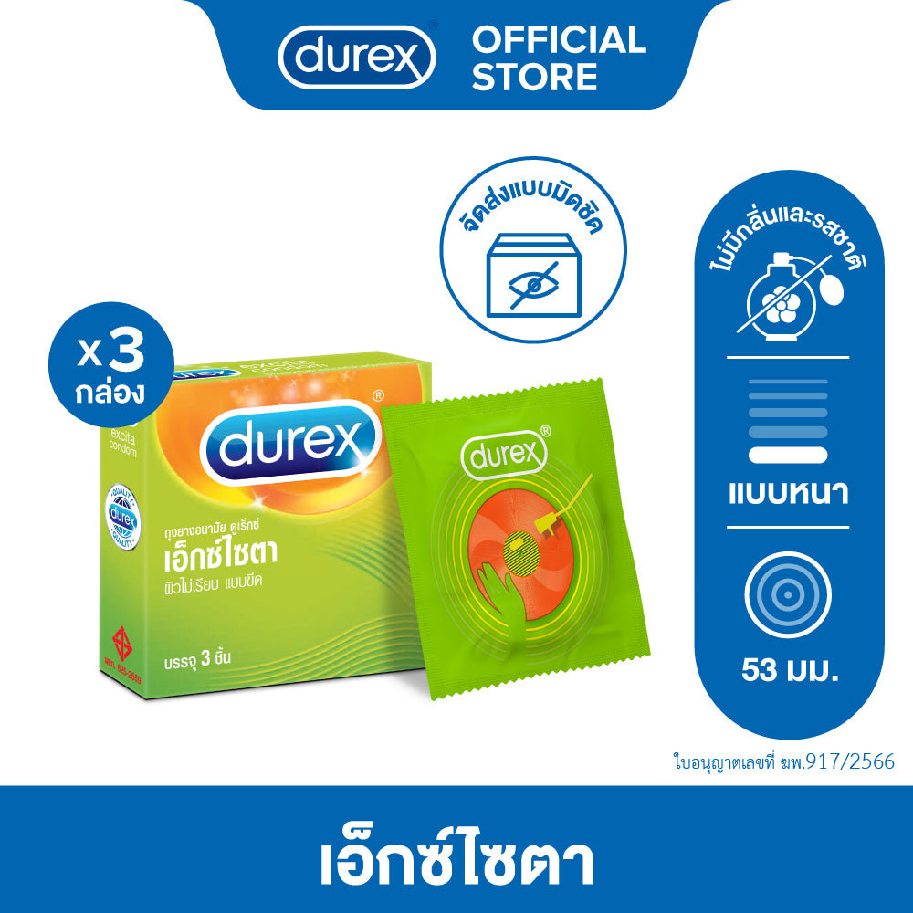 Durex Excita, 53 mm, Rough Texture Condoms, 3 per box