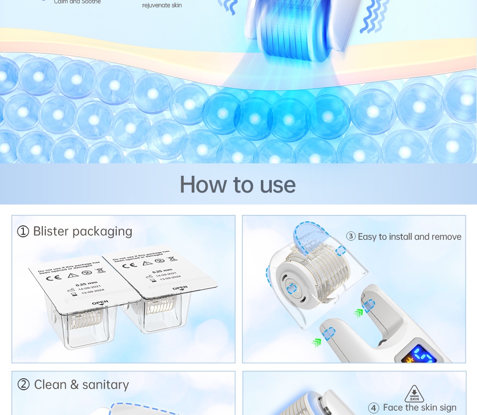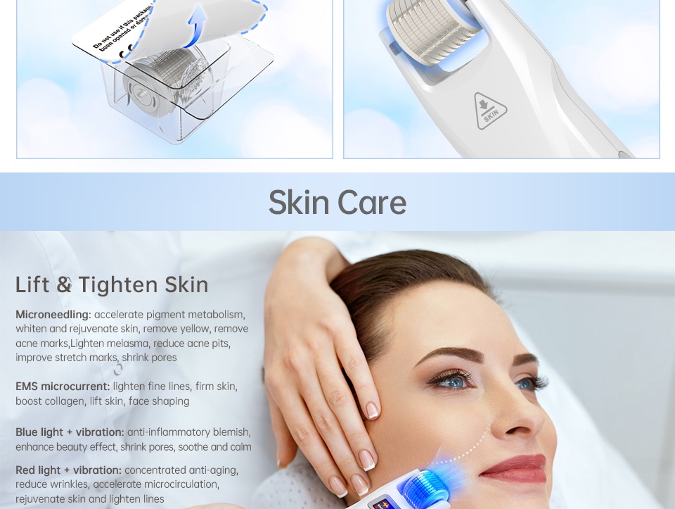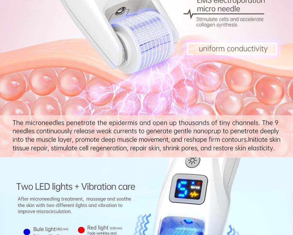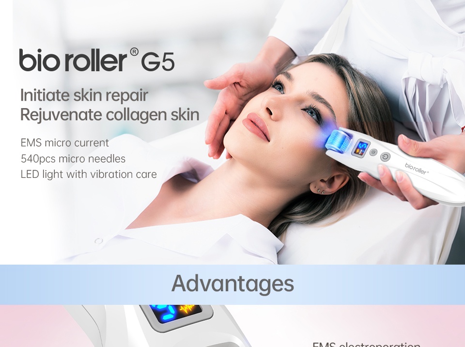 Hair Growth Roller Bio Roller G5 EMS LED Vibration Microneedling Face Lift Machine with 2 Replacement Heads