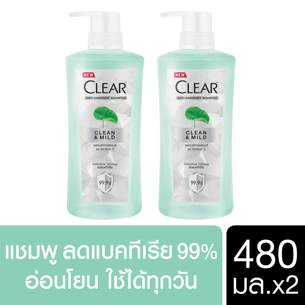 Clear Shampoo Anti-Dandruff Clean & Mild with AntibacPower 480ml x 2