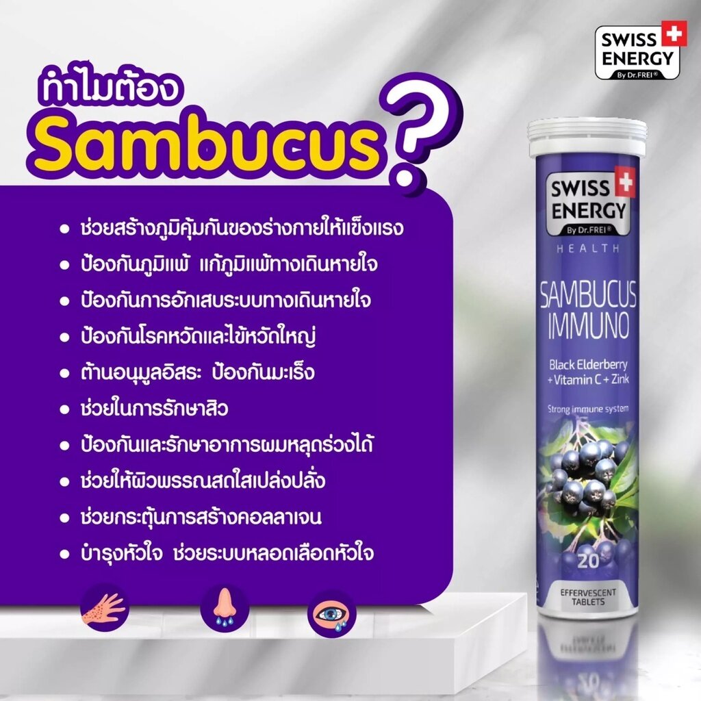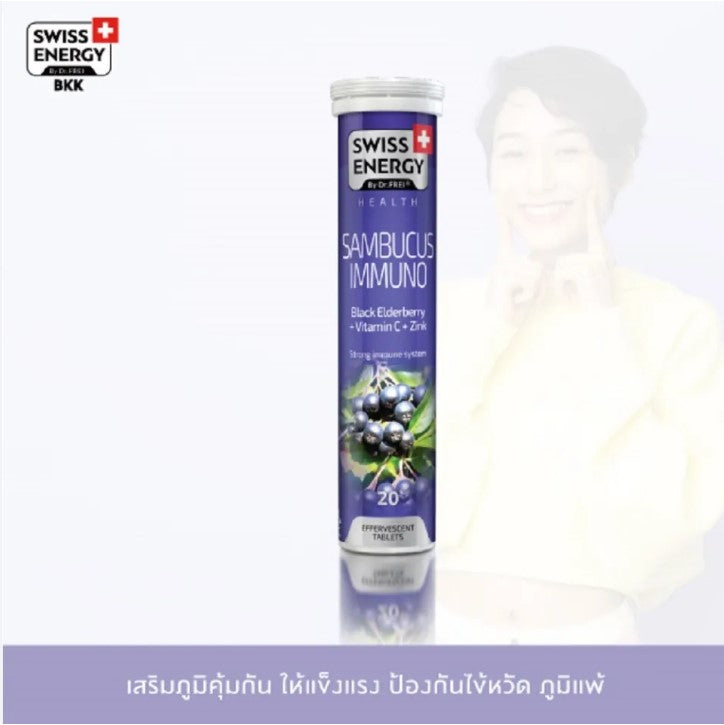 Swiss Energy Sambucus Immuno, effervescent vitamin tablets, Sambucus, boosts immunity, relieves nasal congestion, sinusitis, colds, coughs