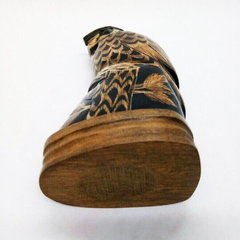 Owl Sculpture Water Buffalo Horn Carved 6" Feng Shui Decor Collectible Gift V.18