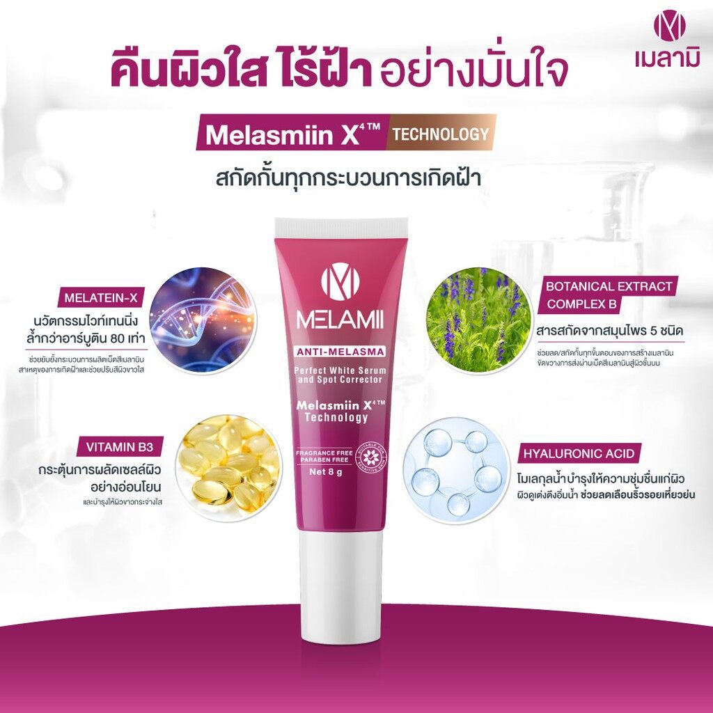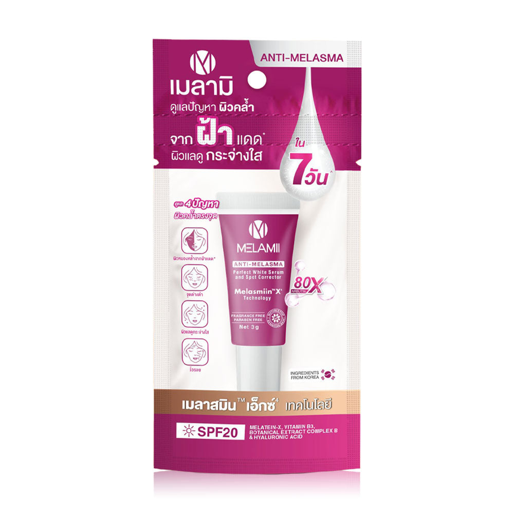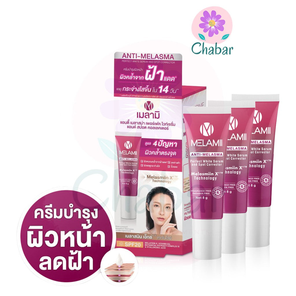 Description Condition : New Size : 35g / pc. Quantity : 1, 6, 20 Pcs. / Set Facial Cream MelamiAnti-Melasma white serum and spot corrector, care for dark skin spot size 8 g SPF20 A mixture of 1.Meletein-x: Helps to inhibit Tyrosinase enzyme, reducing the production of melanin pigment. 2. Botanical extract complex B: Block the melanin transmission process to the upper skin. Stimulates skin cell turnover and makes it radiant. 3.B3 Vitamin: Makes the skin flexible, strong. Prevents skin from irritation. 4.Hyaluronic Acid: moisturize the skin, reduce wrinkles, make the skin look firm. Fragrances Free, Alcohol Free and Parabens Free, light skin, suitable for sensitive skin Property - Reduce fade freckles, dark spots at the point - Reduce fine lines around to be shallower - Prevents blemishes repeatedly - Natural white skin How to use : Apply on blemishes, freckles or dark spots on a daily basis for a brighter complexion. Our Policy Customs Duty fees & Import Taxes: (IMPORTANT, Must Read Before Ordering) # Buyers may need to pay the customs fees & import taxes when your order value is higher than the threshold value of your country. Please check with your country's customs to understand the fee rate before ordering so you can estimate how much you need to pay. # Customs duty fees / import taxes and charges are not included in the product price or shipping cost. These fees are the buyer's responsibility. # The customs fees / taxes are normally collected by the shipping carrier company to pay for your country's customs. It is not the additional shipping charge from us so please don't confuse. # I cannot accept the return shipment because buyers don't want to pay the customs fees / taxes in any case. # Customs duty fees / taxes are the law of your country. No one can have the privilege to avoid these fees. If you don't want to pay these fees / taxes, please don't buy Shipping: # Shipping worldwide from Thailand via Thailand via Economy shipping Airmail and including provide Tracking number. & take 14-23 business days. (The shipping time may be longer than normal depending on the location of your area, the uncontrollable customs clearance delay, or other uncontrollable events). # We will normally ship the item within 3 business days. # For multiple orders, if no other instruction from the buyer, the orders will be combined to ship together in 1 shipment. # The price does not include REMOTE AREA CHARGE FROM DHL EXPRESS. Return & Refund: # 100% Guarantee. Any issue, please let us know & get full refund in 30 days. # Postage cost is non-refundable. Return postage cost is the buyer's responsibility. Thank you very much.