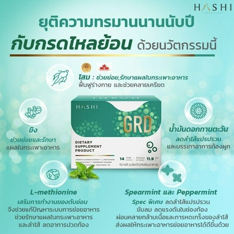 Expedited shipping by DHL express 3-5 business days delivery. **** Excluding Remote Area Surcharge **** Description Condition: Brand, New, Never open Type: Hashi Quantity : 3 Boxes / Set Content: 14 Tablets / Box Product detail 1?. Increase the efficiency of digestion. - Stimulates digestion, absorption, adjusts the digestive system to relax It acts directly on the digestive system. enhance the functioning of the pancreas Helps the digestive system work better. 2?. Manage stomach ulcers - Reduce inflammation of the stomach esophagus and intestines Stimulates the creation of mucus covering the stomach. relieve burning sensation 3?. Increase the peristalsis of the stomach, food flows into the small intestine faster - Reduce the tightness and contraction of the muscles in the stomach. Stimulate blood flow to the stomach more. 4?. Expel wind, reduce tightness, colic. - Reduce flatulence, tightness, colic, abdominal discomfort, discomfort can be improved. 5?. Reduce irritable bowel syndrome - Reduce irritable bowel syndrome and enhance constipation relief effect 6?. Relax muscles, relieve stress. - Make the work of the stomach more efficient balance in the body Relieve symptoms of GERD and relieve stress. With the working mechanism of Hashi GRD, it really helps to solve acid reflux problem... (Results will depend on the individual Taking care of yourself together will help to see results faster.) How to eat: 1. Before breakfast & dinner 15-30 minutes 1 tablet/time Until the symptoms subside and disappear (cure the inflammation in the stomach and intestines until it disappears)