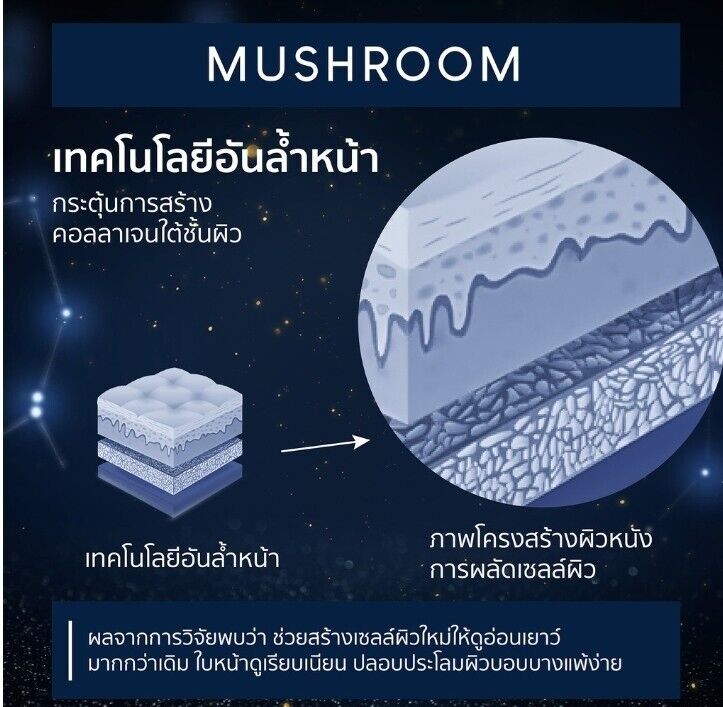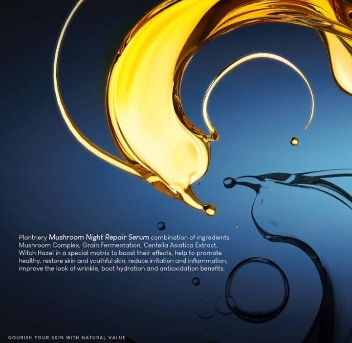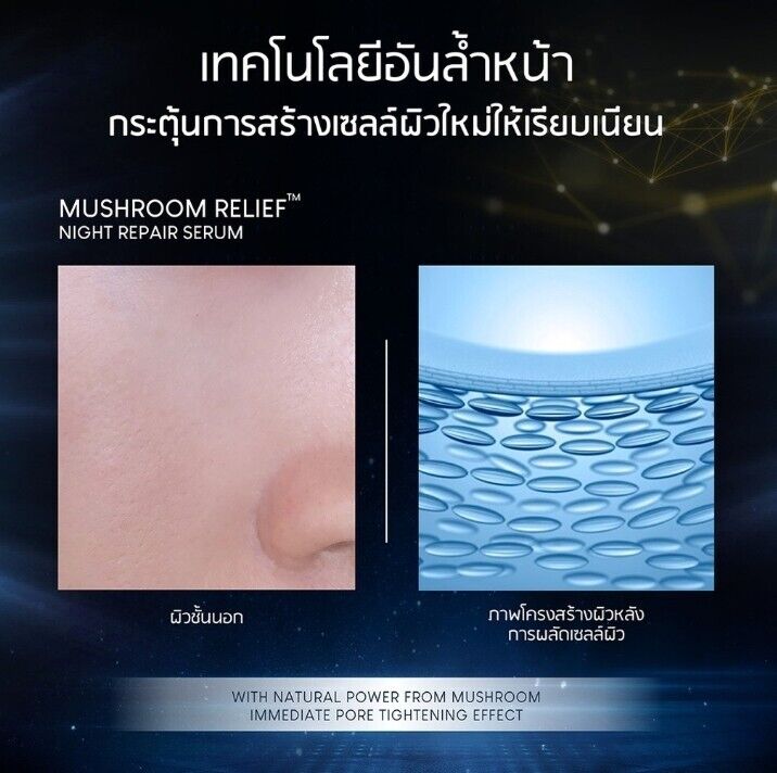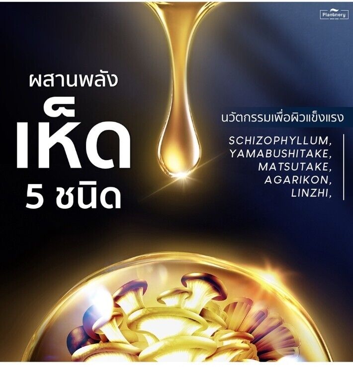 Plantnery Mushroom Night Repair Serum A concentrated serum extracted from 5 mushroom strains reveals a naturally flawless complexion. Suitable for People with weak, sensitive skin, Those who want to strengthen the skin, People with dry, dehydrated skin Lack of moisture , Those with oily face and acne , People who have problems with large pores ? People who have wrinkles, wrinkled skin , People with uneven skin tone 1.Soothe sensitive skin to be stronger. 2.Restore damaged skin, dry skin, make it smooth, soft and moisturized. 3.Stimulate the production of collagen under the skin. 4.Helps to adjust the skin condition. To be balanced 5.Restore smoothness and firmness to the skin. 6. Protect the skin from pollution. 7.Repair and stimulate skin regeneration To look younger 8. Free of alcohol, fragrances, parabens, silicones and colors.