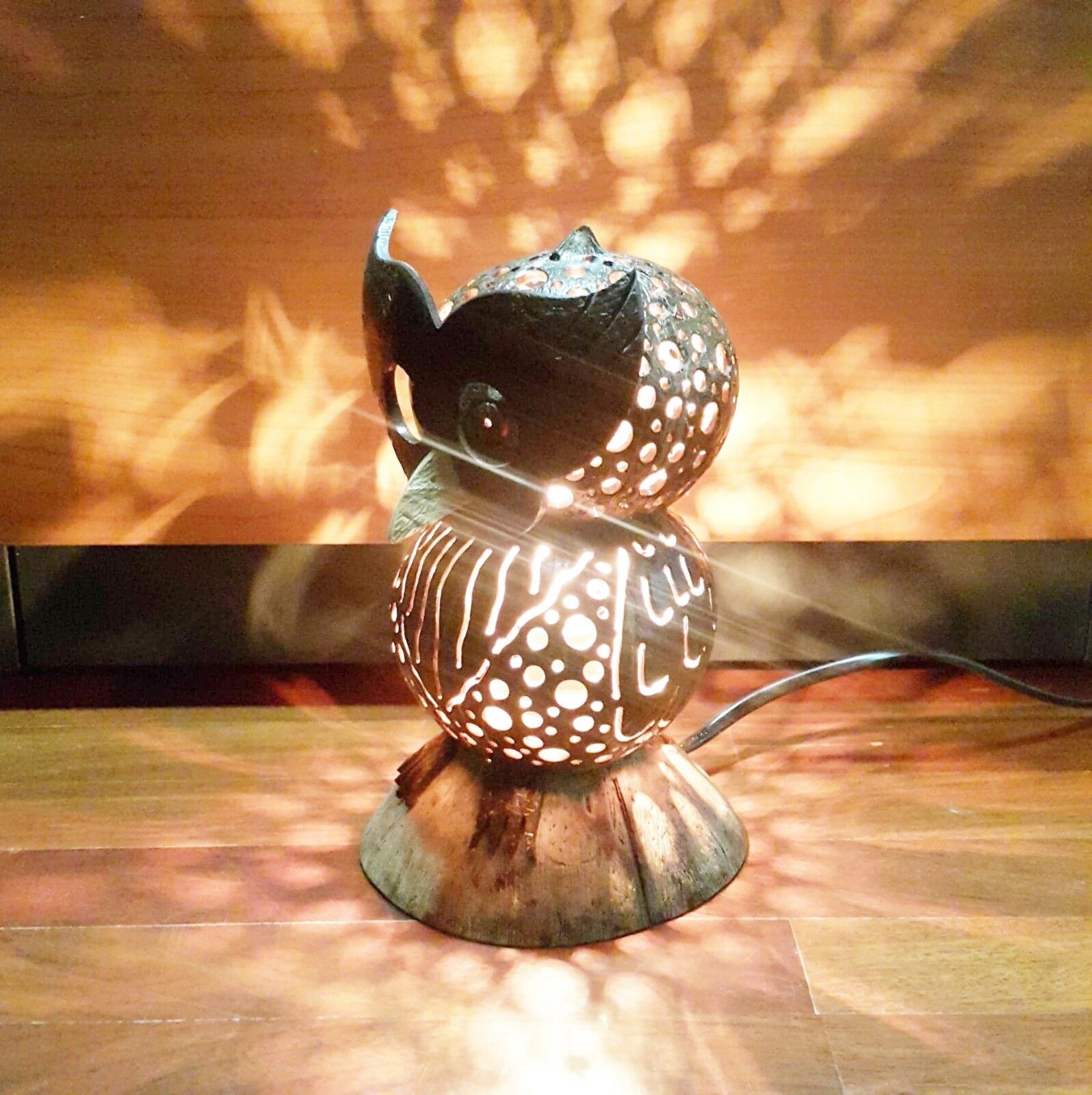 Lamp Shade Table Bedside Desk Vintage Owl Coconut Shell Wooden Home Decor Gift Expedited shipping