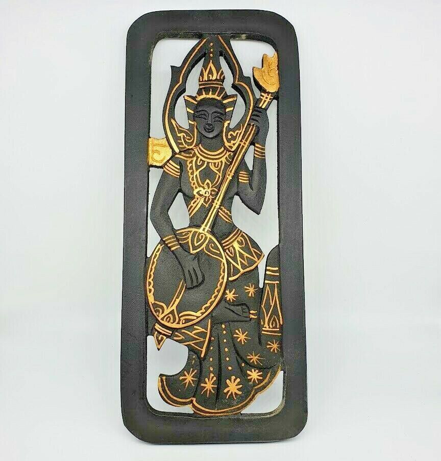 Asian Wood Panel Wall Thailand Art Decor Carved Hanging Handmade Hand Carved
