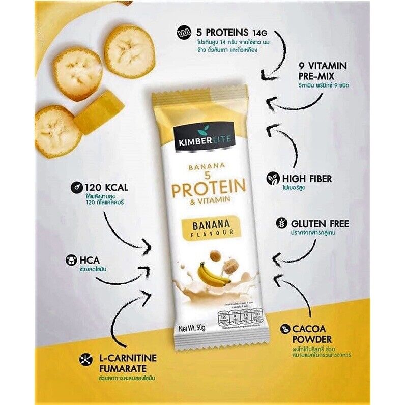 Kimberlite supplements are made from five proteins, protein from eggs, rice, soy, milk, and peas. Only high protein content up to 14 grams and vitamins 9 types, packed in a full pack of 30 grams, vitamins help the body refreshed. It is not worn out, and it also contains antioxidants, free from fruit flavors. Just one sachet is full, easy to drink, easy to shape.