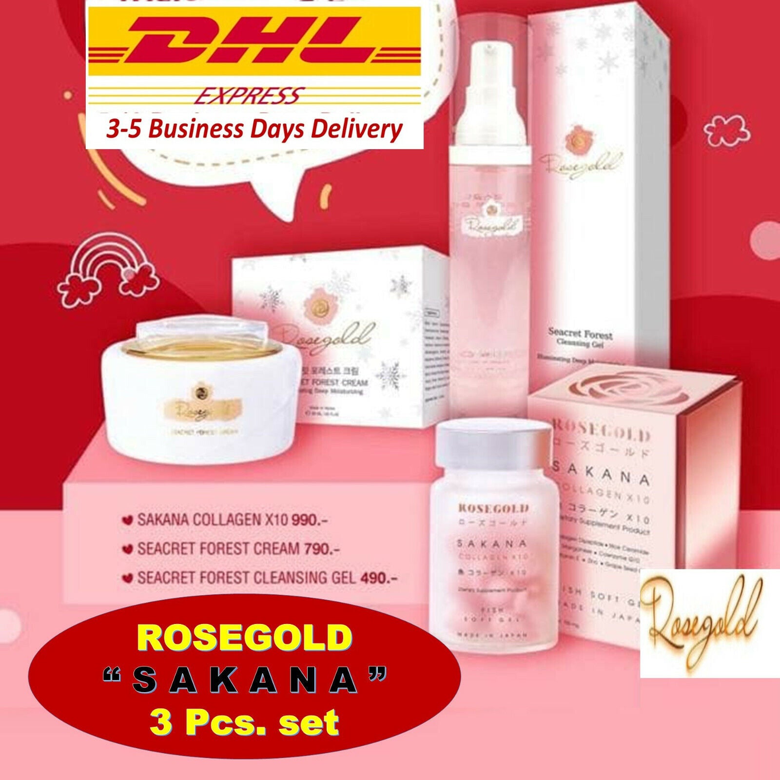Set ROSEGOLD Sakana collagen X10 + Seacret Forest Cream + Cleansing Acne