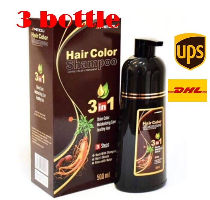 3X Meidu Dye Hair Color Shampoo change color in 5 minutes dark brown black 500ml
