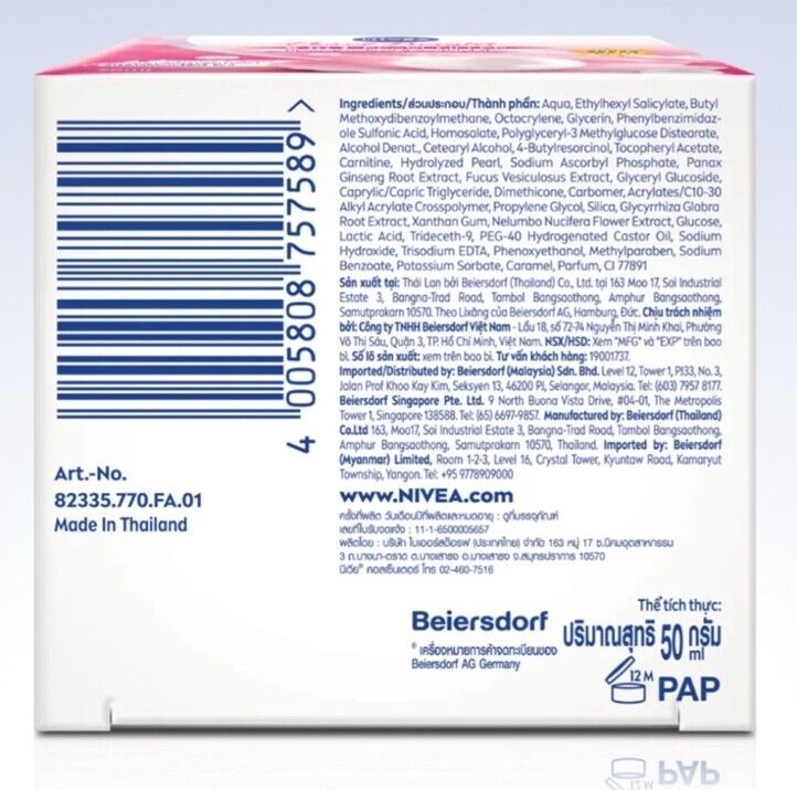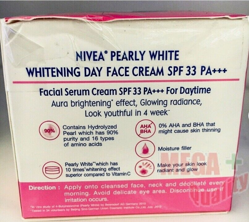 Facial cream serum mixed with sun protection, daytime formula Gentle for all skin types. The face looks radiant* the aura surges Soft, firm, look youthful in 4 weeks~ - Enriched with 90% pure pearl extract containing Amino Acid, 16 types of skin food^ - Pearl Bright++ makes the skin look brighter than vitamin C 10 times+ - Free from BHA that may make skin sensitive to the sun ^Amino Acid in pearl extract Which includes (in pearl extract contains) Leucine,Phenylalanine,Valine,Tyrosine, Methionine,Proline, Alanine, Glutamic,Threonine,Aspartic Acid,Serine,Glycine,Arginine,Lysine,Histidine,and Cystine +From the test results of the effectiveness of 4-Butylresorcinol (Pearly Bright) vs. Vitamin C