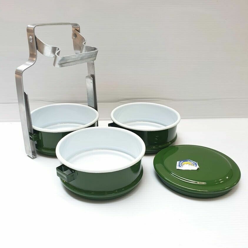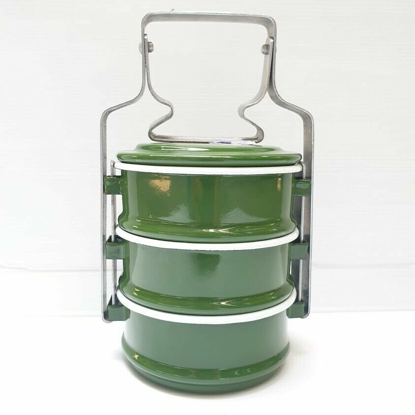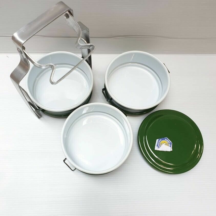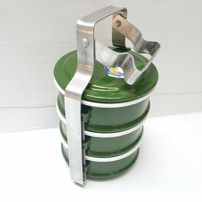 Free shipping & Tracking number 1x Enamel Tiffin Thai Lunch Bento Food Container Carrier Enamelware Pinto Green Product of Thailand Our enamels are selected in a good condition, it is unique and charming itself. So it is a must have item in your house. This Enamel Mug made in Thailand, It is great for contain any hot or cold drink but avoid to contain the acid (eg.lemon, lime, vinegar) that cause tin to be rusted. Food container, called “Pinto” in Thai and “Bento” in Japanese, represents the traditional culture of Thai people. In the past, housewives made the lunchbox for their husbands to eat at work. Children took Pinto from their mothers to eat at school. It is also usual for Thai people to carry Pinto to the temple. These days, with the fast-growing and changing world, Pinto has been fading away from Thai society. Thai people find it more comfortable to have lunch at the nearby restaurant or cafeteria. The old-styles lunchbox is used as collectible stuff. Pinto is only preserved to use as lunchbox offering food for monk at the religious ceremony. This is old style of food container in order to preserve the tradition and culture of the older generation. This old style is valuable either to collect as a collected stuff or to use as food container. The product is made by cold-steel-sheet, then chemical coating to become "Enamelware" and then covered again by Food Grade Color, which has certification as shown in the picture, so you can be sure about your safety when you put rice in one layer, and soup or any kind of food in other layers even hot or cold food. Description Condition : New 3 Stacks Dimension approx : 4" x 1.50" x 5" inches Total High approx : 8.5" inches Material : Thai enamel Color : Light Green New Weight : 4oo gram Quantity : 1 Set (3-Stack) |