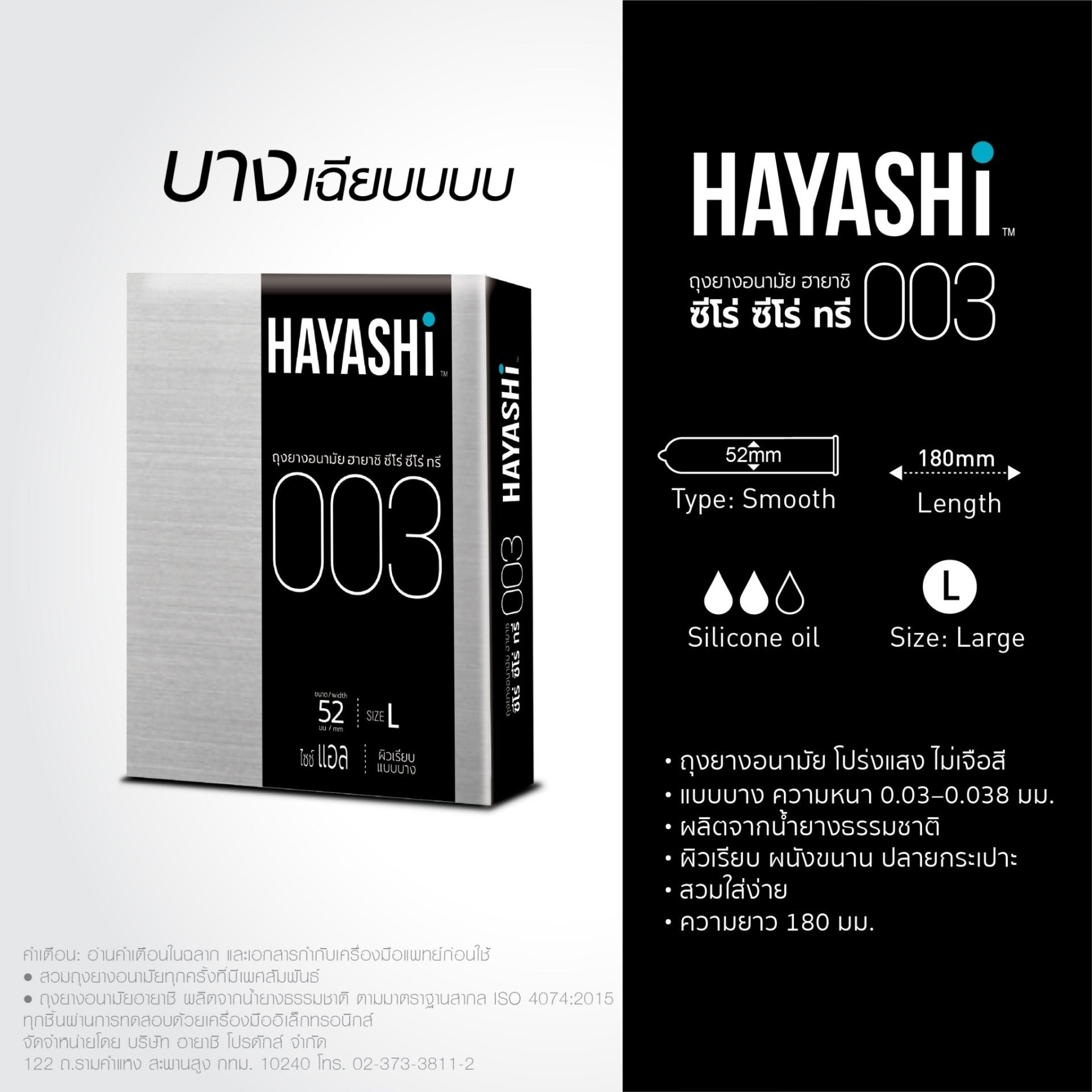 Condoms extra thin ! size 52 mm / Hayashi 003 , thin 0.03 mm. 1 box (10 pcs)