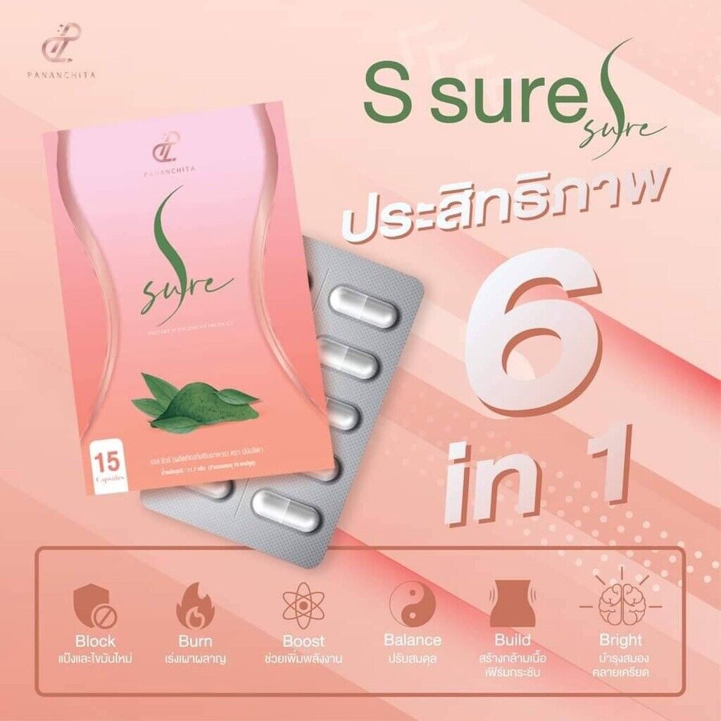 S Sure help break down the metabolism, block fat before it enters the body, prevent accumulated fat and reduce starch accumulation, control hunger, reduce appetite symptoms clearly. Inhibits the process of absorption of sugar and the fat that enters the body with green coffee bean reduce old fat and inhibit the creation of new fats with black pepper to stimulate the body's metabolism