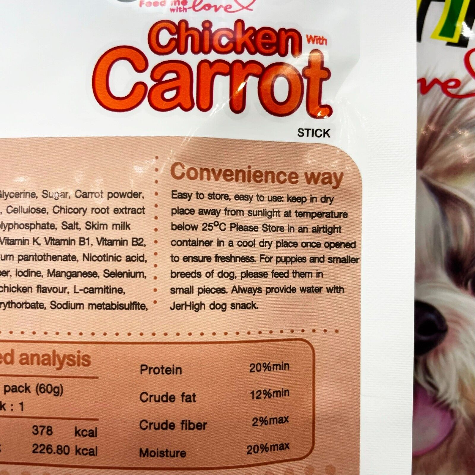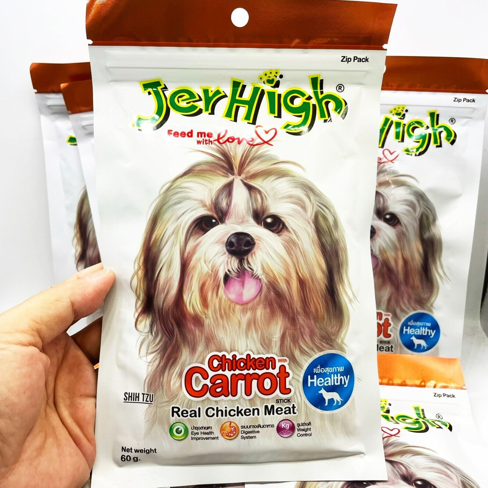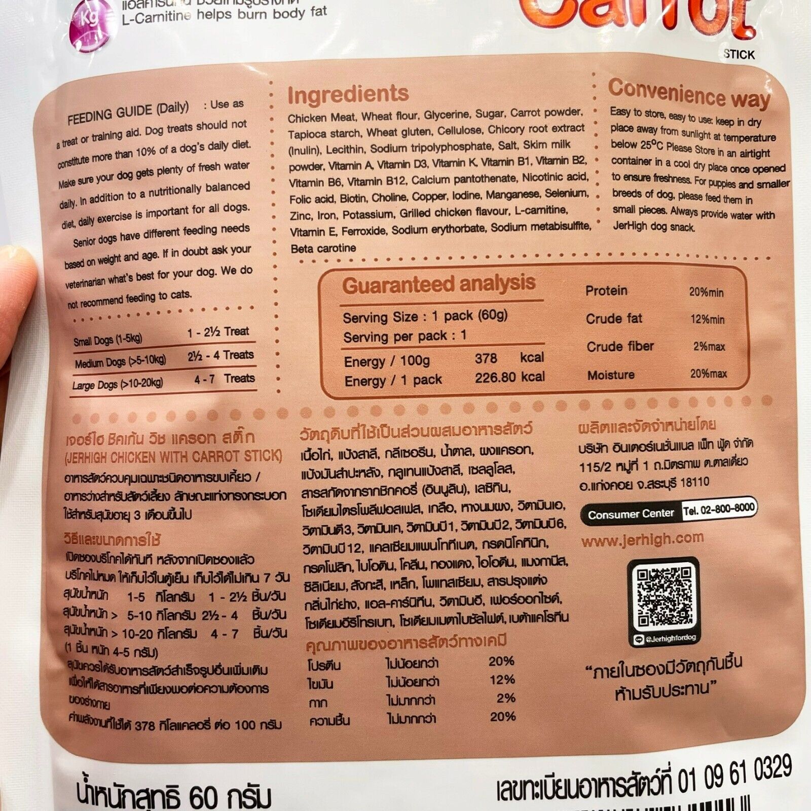 Made from real chicken meat through meticulous improvement And through research from leading laboratories that it is clean, safe, full of nutritional value. You can be assured that the Jerhigh Carrot Stick is the perfect reward for your beloved dog.