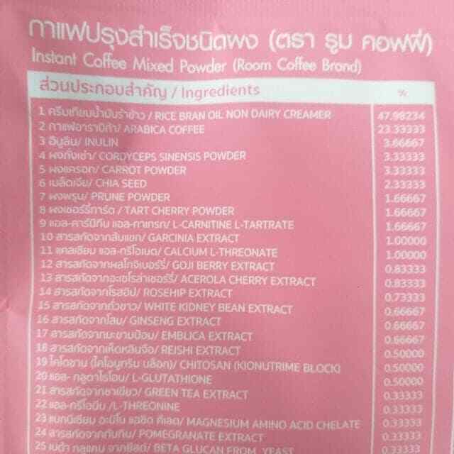 **** Excluding Remote Area Surcharge **** Description Condition : 100% Brand new, 100% authentic Size : 10 Sachets / Pack(15 g. per sachets) Weight : 15g / Sachet Quantity : 3 Packs / Set No. FDA 10-1-00152-1-0005 Product feature We create premium grade ready-to-drink coffee Under the concept of drinking coffee in a new era Great taste that must come with "Good for health" Use sweeteners instead of sugar. Low calorie * Only 40 Cal / sachet 0% cholesterol 0% Trans Fat Without coffee grounds 36 species ingredients • Chia chia seed • Codycep Powder • Ganoderma Ganoderma Extract • Turmeric extract Tumeric extract • Inulin Innulin • Prune powder • Ginko Extract • Emblica Extract • Garcinia Extract Garcinia Extract • L-Glutathione L-Gultathione • Kionutrim Kionutrime block • L-Theonine L-Theonine • Black sesame seed extract • L-Carnitine L-Carnintine-L-Tratrate Chromium picolinate Chromium picolinate • White Kidney bean extract • Collagen Carrot Powder • Cherry Tart Tart • Acerola cherry Acerola cherry • Calcium L-Triionate Calcium-L-Theonate • Magnesium amino acid chelate, Magnesium amino acid chelate • Rosehip Rosehip Extract • Lycopene • Pomegranate Pomeganate Extract • Bilberry Bilberry Bill • Vitamin B12 • Vitamin E • Vitamin A • Goji Berry Extract • Taklucan from yeast beta glucan • Luteine ??Luteine ??• Coenzyme Q10 Co Enzime Q10 • Ginseng Extract Direction : Mix 1 sachet of coffee per 100 CC of hot water or cold water. Caution : - Children, pregnant women and those with Comorbidities should not eat. - Should eat a variety of all 5 group in the right proportions on a regular basis. - No the prevention and treatment of disease. THE RESULT MAY VARY BY INDIVIDUAL. Our Policy: Customs Duty fees & Import
