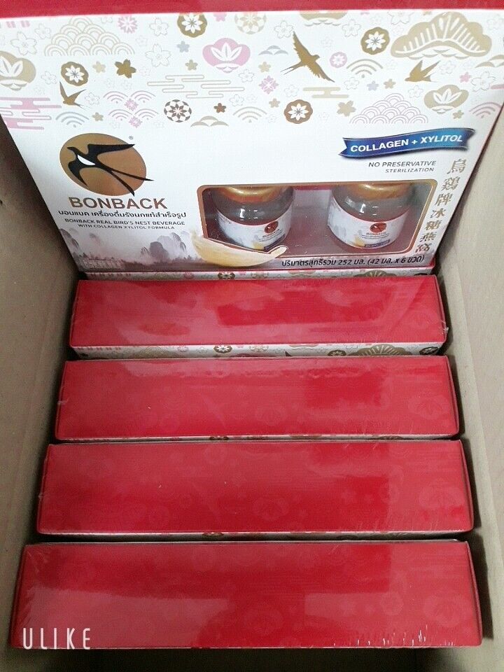 18x 42ml Real Bird's Nest Drinks Sugar Free Collagen Natural Nourishing Healthy Expedited shipping by DHL express 3-5 business days delivery. **** We cannot ship to REMOTE AREA **** Description Condition : New Size : 42ml / Bottle (6 Bottles / Box) Quantity : 3 Boxes / Set (Total receive = 18 Bottles) Formula : Mixed with collagen, sugar free, Xylitol Food Serial Number: 11-1-09028-2-0112 BONBACK Bird Nest (100% natural formula) is made from real natural bird's nest. The resulting bird's nest is a valuable item and is known to be a great nourishing food. High quality selected from natural bird's nest sources in the South Sea Islands of Thailand Ready to drink at normal temperatures, warm to hot or chilled for better taste. It saves time preparing your bird's nest when the lid is not opened. It can be stored for a long time without refrigeration, once opened, should be eaten immediately within 24 hours - High quality genuine bird's nest From natural caves, they are sold at a great price, since the manufacturer has been sourcing natural raw materials for more than 30 years. - Contains up to 2.8% of bird's nest meat (dry weight) in one bottle. - Genuine cave bird's nest, premium grade, at a cost-effective price, straight from a certified factory - Export quality - Passed a high standard of cleaning and manufacturing processes - Free from contamination with the production process that is 100% natural raw materials - Through Sterilization at 210 degrees heat, thus making the drink can be stored for up to 2 years without preservatives Key ingredient - Bird's Nest, Natural Cave - Collagen extracted from freshwater fish - Xylitol * No added color and no preservatives * How to store : Store in a cool and dry place. Our Policy: Customs Duty fees & Import Taxes: (IMPORTANT, Must Read Before Ordering) # Buyers may need to pay the customs fees & import taxes when your order value is higher than the threshold value of your country. Please check with your country's customs to understand the fee rate before ordering so you can estimate how much you need to pay. # Customs duty fees / import taxes and charges are not included in the product price or shipping cost. These fees are the buyer's responsibility. # The customs fees / taxes are normally collected by the shipping carrier company (DHL) to pay for your country's customs. It is not the additional shipping charge from us or DHL so please don't confuse. # I cannot accept the return shipment because buyers don't want to pay the customs fees / taxes in any case. # Customs duty fees / taxes are the law of your country. No one can have the privilege to avoid these fees. If you don't want to pay these fees / taxes, please don't buy Shipping: # Shipping worldwide from Thailand via DHL Express & take 3-5 business days. (The shipping time may be longer than normal depending on the location of your area, the uncontrollable customs clearance delay, or other uncontrollable events). # We cannot support to ship the item to the remote area in some countries. So, please kindly check your location with DHL Express in your country first if you don't sure you are in the remote area or not. # We will normally ship the item within 3 business days. # For multiple orders, if no other instruction from the buyer, the orders will be combined to ship together in 1 shipment. Return & Refund: # 100% Guarantee. Any issue, please let us know & get full refund in 30 days. # Postage cost is non-refundable. Return postage cost is the buyer's responsibility. Thank you very much. Have a good day. ![]() |