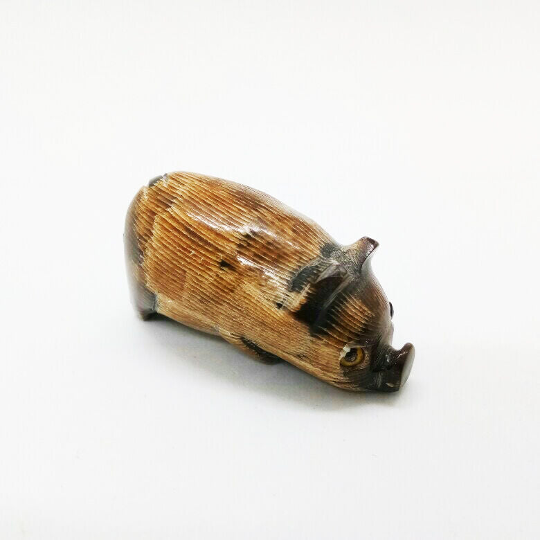 PIG Sculpture Decor Water Buffalo Horn Fortune Carved Happiness Lucky V.22