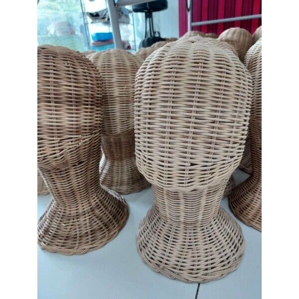 30cm Handcraft Mannequin Wicker Rattan Head Wig Hat Stand Shop Decorate