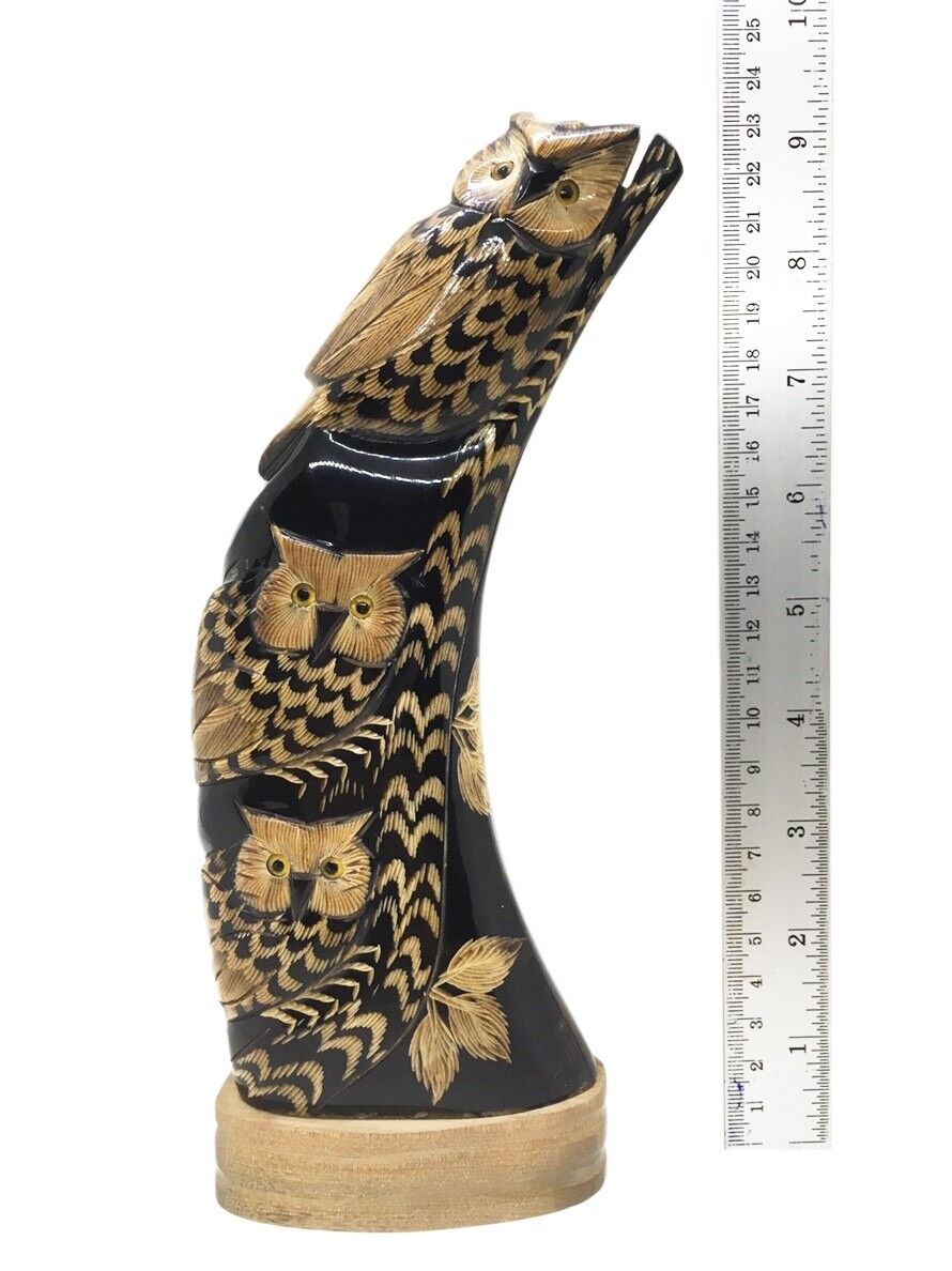 Welcome Owl Sculpture Water Buffalo Horn Carved 9" Feng Shui Decor Collectible Gift 2 DescriptionCondition: NewSize: 3 1/2 x 2 x 9 inches