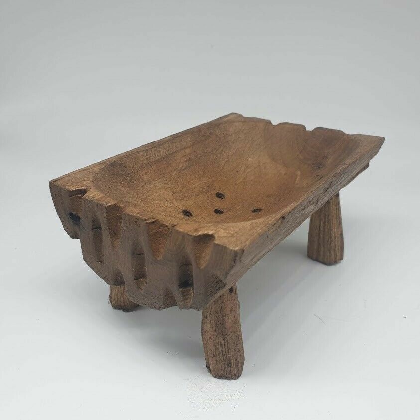 Bowl Wood Hand Carved Vintage Teak Rustic Soap Dish Fruit Tray Antique Wooden