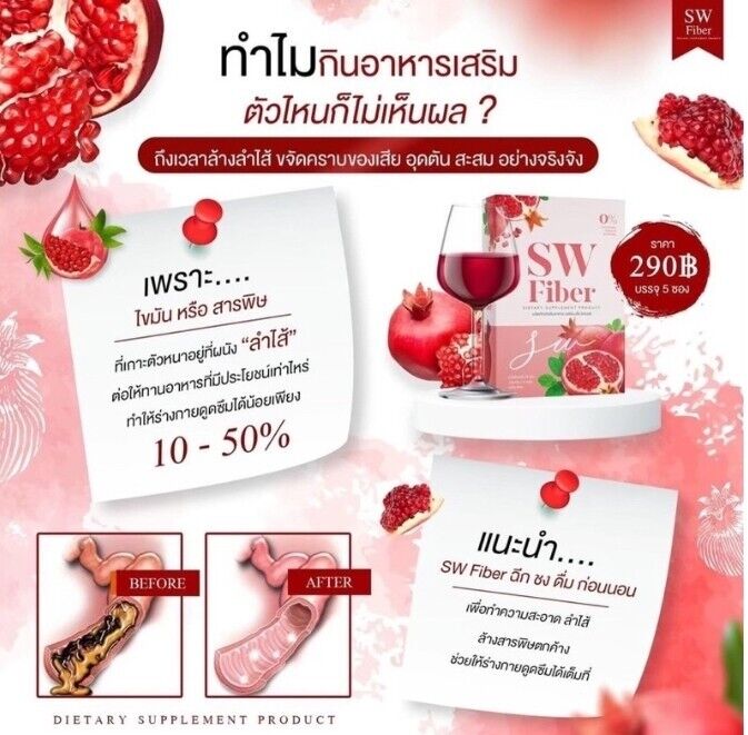 SW Fiber helps to balance our digestive system. Help detox fat and waste residues in the intestines. Suitable for people with heavy elements, constipation, irregular bowel movements, eat a lot, do not like to eat vegetables !! You have to take SW Fiber to your house. No pain, no diarrhea. You don't have to be afraid to take a photo in time.