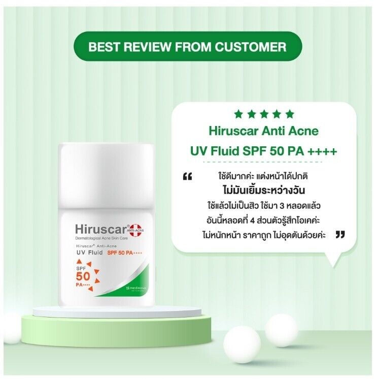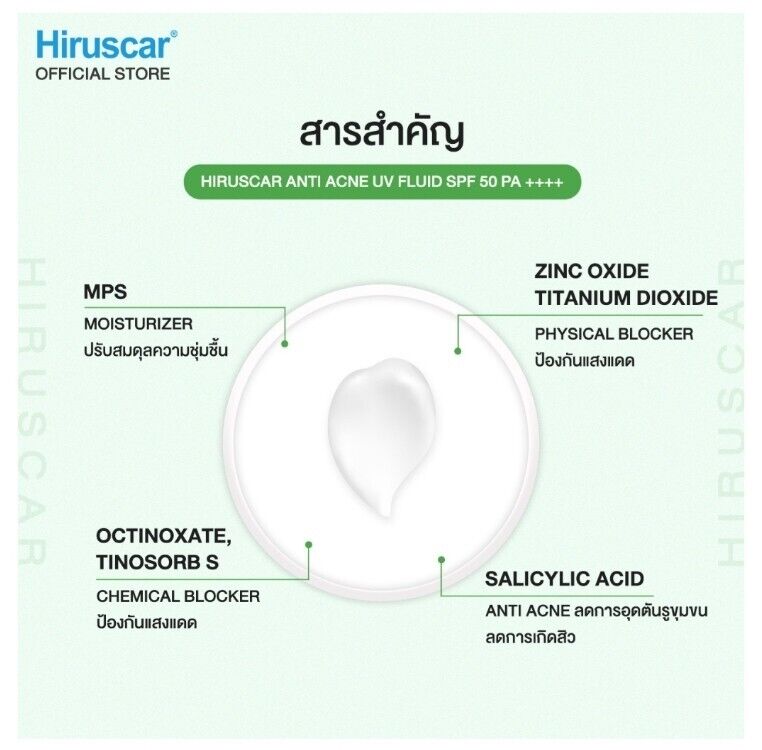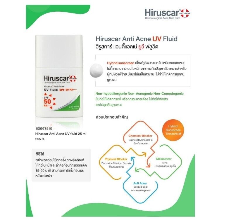 Anti Acne UV Fluid SPF50 / PA ++++ 25g Sun Protection Products For skin that may be prone to acne Helps protect the skin from UVA / UVB rays, light texture, not sticky. Spread easily, dries quickly and leaves no residue on the skin.