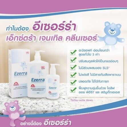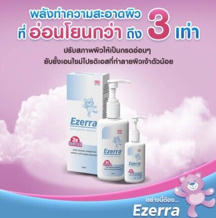 Ezerra Extra Gentle Cleanser is formulated with Amisoft: Cleanse the skin without disrupting skin NMF and also contains Stimu-tex AS? to help relieve itch and reduce skin irritation. Ezerra Extra Gentle Cleanser is Sodium Lauryl Sulfate (SLS) / Sodium Laureth Sulfate (SLES)-free. Suitable as a daily cleanser for children with dry and sensitive skin.