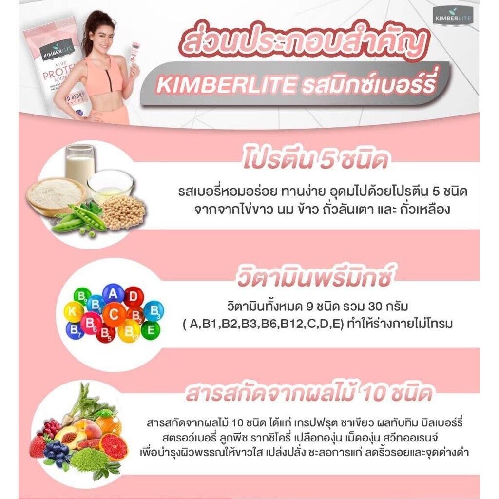 Kimberlite supplements are made from five proteins, protein from eggs, rice, soy, milk, and peas. Only high protein content up to 14 grams and vitamins 9 types, packed in a full pack of 30 grams, vitamins help the body refreshed. It is not worn out, and it also contains antioxidants, free from fruit flavors. Just one sachet is full, easy to drink, easy to shape.
