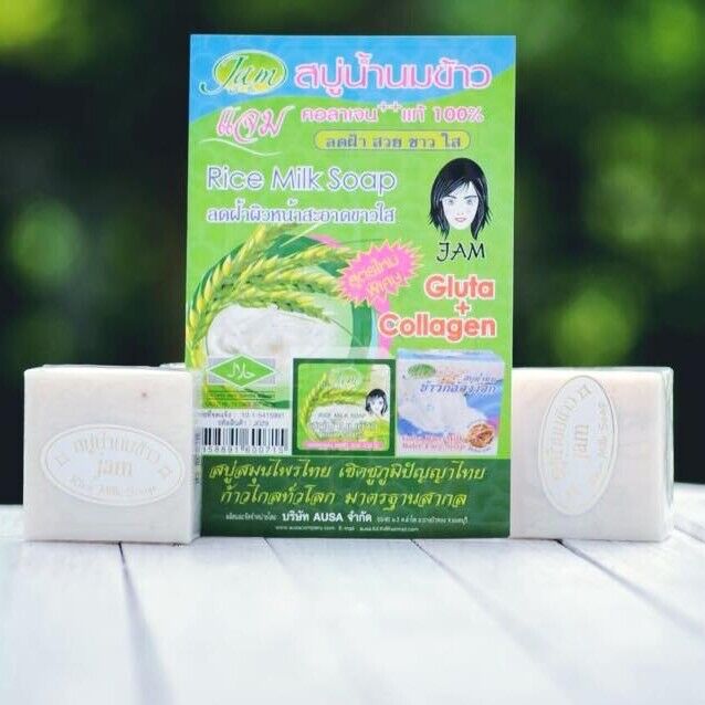 12x Jam Thai Rice Milk Soap Whitening Collagen Face Body Herbal Handmade 60g