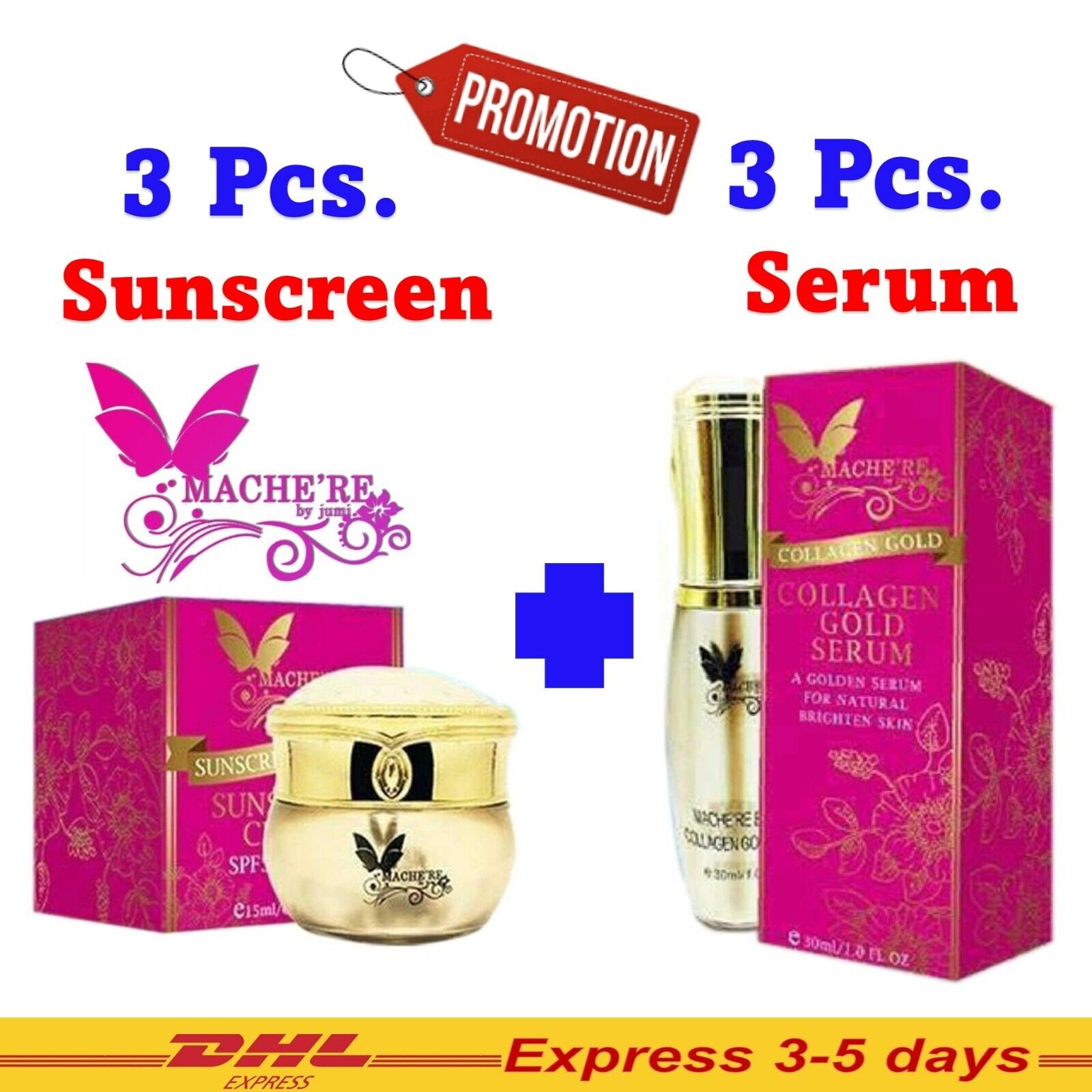 3Set Mache're Collagen Gold Serum - Sunscreen Facial Care Whitening SPF50 PA+++ (6 pcs) Expedited shipping by DHL express 3-5 business days delivery. **** Excluding Remote Area Surcharge **** Description Condition : New Size : Collagen 30g Sunscreen 15g Quantity : 6 Pcs. (Collagen Gold Serum =3 Pcs. & Sunscreen SPF 50 = 3 Pcs. Product detail & Benefit Set Whitening Set Reduce dark spots and dark spots from acne to fade. The skin is smooth. Skin color Add moisture to the skin. It also helps to improve the appearance of the skin. Apply with SPF 50 PA +++ Silicone Cream The set includes. Collagen Gold Serum Gold Collagen 30g Pure gold enriches skin care with deep sea fish. With the smallest molecule Can be down to the bottom of the skin without decay. Helps control moisture balance, waving skin, acne, wrinkles, pores on the face. Shallowly obvious. Smooth skin to reduce wrinkles. And rough skin. The serum permeates the skin, leaving it white and radiant. Notification number: 10-1-5822922 Sunscreen Sunscreen SPF 50, 15g New sunscreen Lightweight, long lasting, creamy texture that is lightweight, easy to clean, no grease, no sticky residue. With skin care substances. Ginseng, white Kwao Krua, vitamins and pure gold Helps to brighten and tighten skin. Notification number: 10-1-5843703 "Results may vary depending upon the individual skin condition Our Policy: Customs Duty fees & Import Taxes: (IMPORTANT, Must Read Before Ordering) # Buyers may need to pay the customs fees & import taxes when your order value is higher than the threshold value of your country. Please check with your country's customs to understand the fee rate before ordering so you can estimate how much you need to pay. # Customs duty fees / import taxes and charges are not included in the product price or shipping cost. These fees are the buyer's responsibility. # The customs fees / taxes are normally collected by the shipping carrier company (DHL) to pay for your country's customs. It is not the additional shipping charge from us or DHL so please don't confuse. # I cannot accept the return shipment because buyers don't want to pay the customs fees / taxes in any case. # Customs duty fees / taxes are the law of your country. No one can have the privilege to avoid these fees. If you don't want to pay these fees / taxes, please don't buy Shipping: # Shipping worldwide from Thailand via DHL Express & take 3-5 business days. (The shipping time may be longer than normal depending on the location of your area, the uncontrollable customs clearance delay, or other uncontrollable events). # We cannot support to ship the item to the remote area in some countries. So, please kindly check your location with DHL Express in your country first if you don't sure you are in the remote area or not. # We will normally ship the item within 3 business days. # For multiple orders, if no other instruction from the buyer, the orders will be combined to ship together in 1 shipment. Return & Refund: # 100% Guarantee. Any issue, please let us know & get full refund in 30 days. # Postage cost is non-refundable. Return postage cost is the buyer's responsibility. Thank you very much. Have a good day.