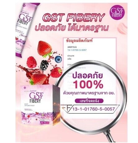 GST Fibery is a dietary supplement containing high fiber.Which will help in the bowel excretion, what is piled in the intestine Go out with the stool And fiber also helps Increasing the amount of good microorganisms in the body In addition, we have chitosan. There are various vitamins and berries. Help in the skin