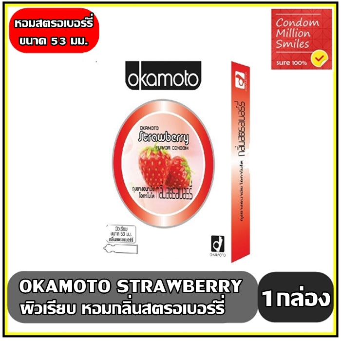 Okamoto Strawberry, strawberry-flavored condoms, smooth surface, 53 mm, 1 box (10 pieces)