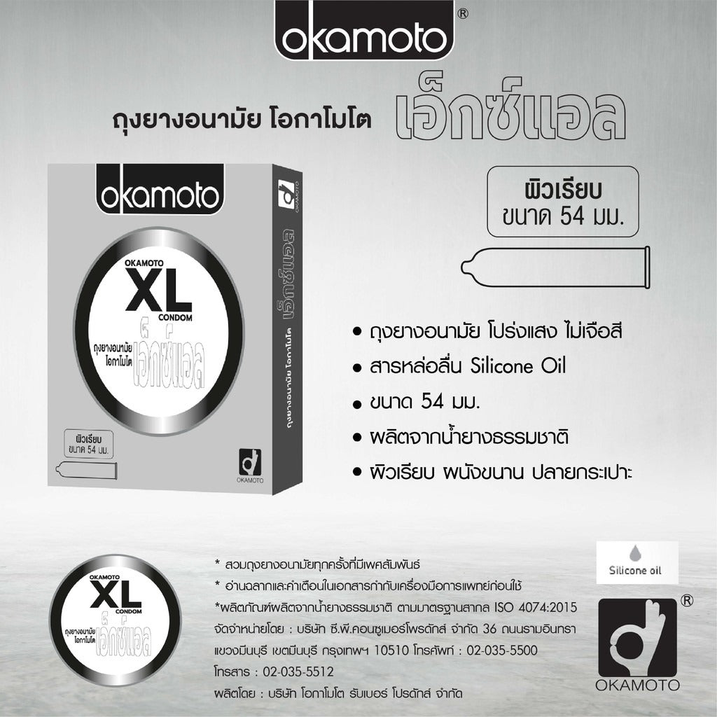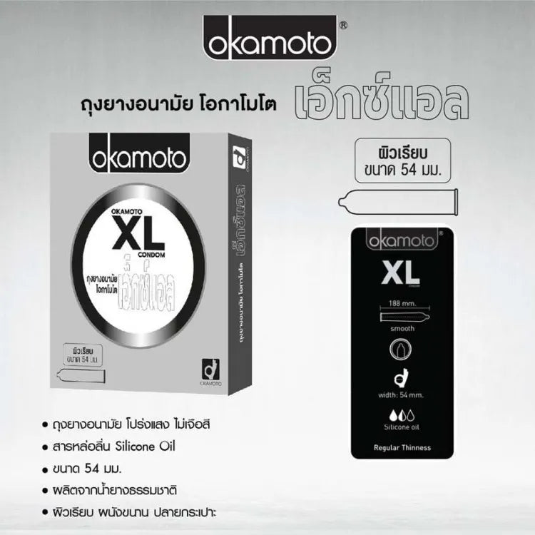 Okamoto XL Condoms, Okamoto Condoms, 54 mm, Smooth Surface (10/Box)