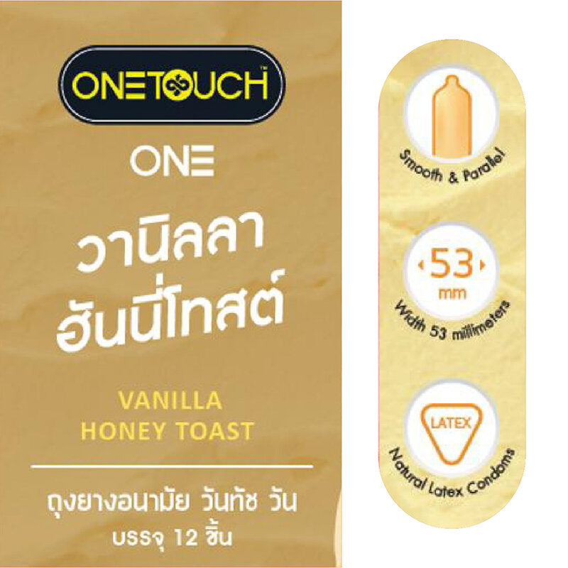 Onetouch One Vanilla Honey Toast condoms are 53 mm smooth condoms with a thickness of 0.05 mm, designed to enhance the atmosphere and create a memorable experience.