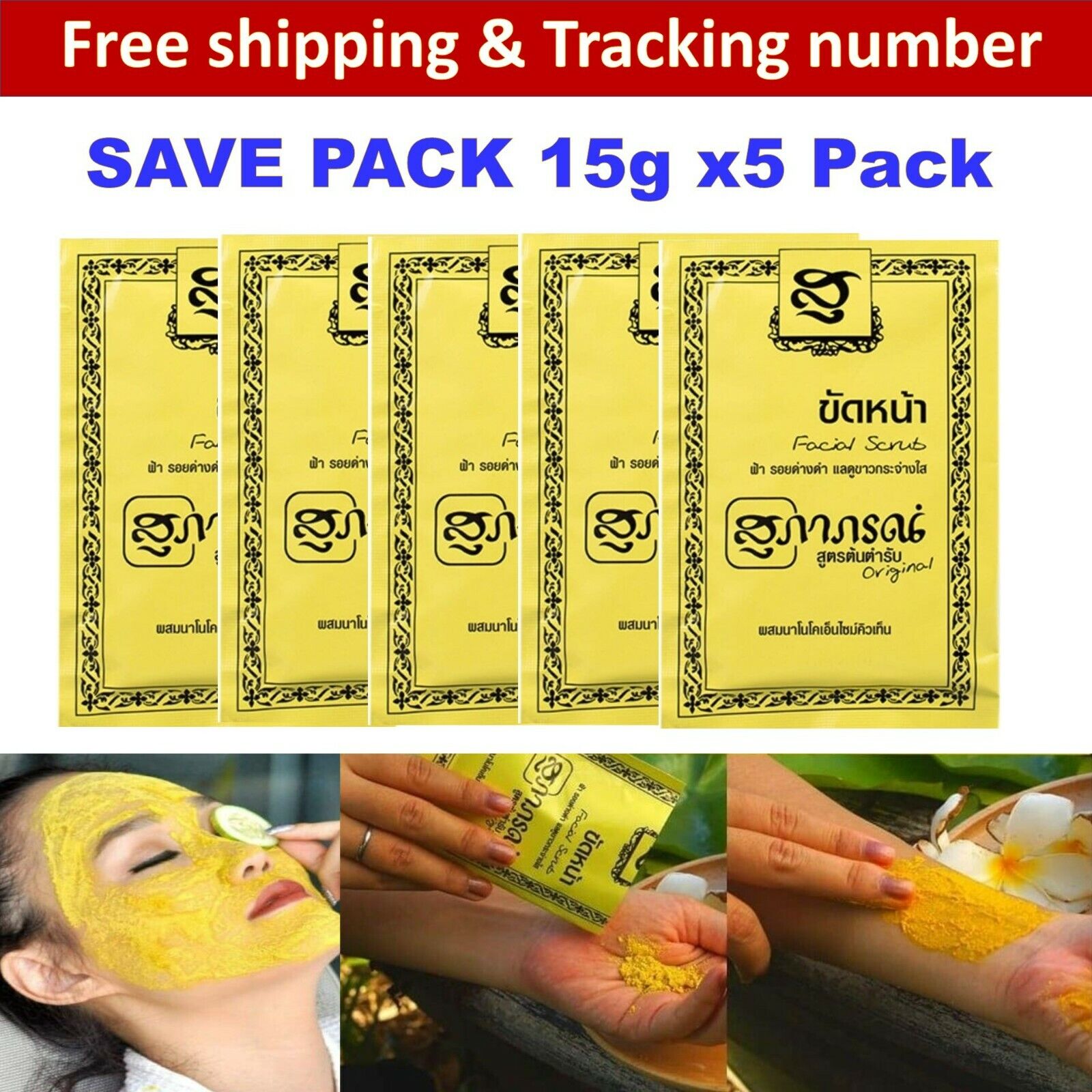 5 Pack Thailand Supaporn Herb Facial Scrub CO Q10 Skin Whitening Dark Spot 15g