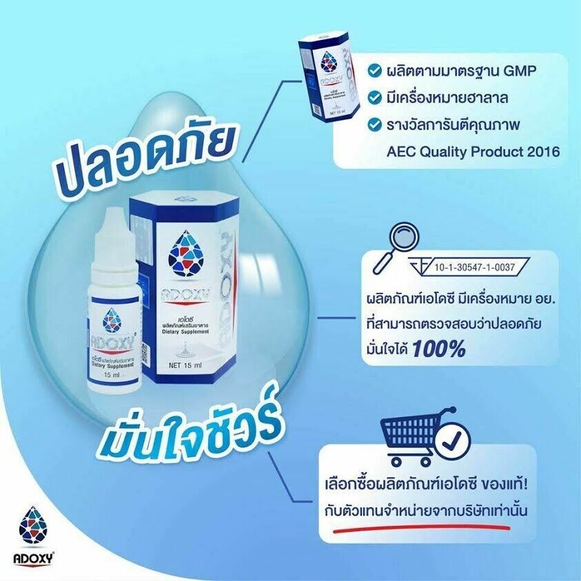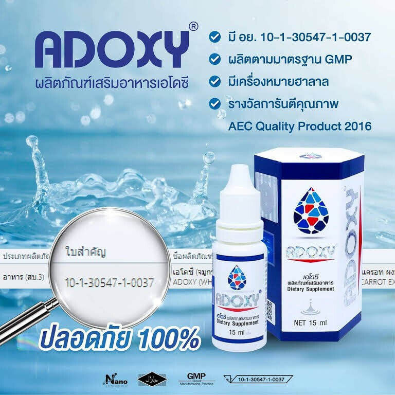 Adoxy is the product that's certified by the Food and Drug Administration and has Halal certification mark. You can be assured that our products are high quality and high safety for your body. Adoxy has been selling for over 14 years. We're available in Thailand and abroad.