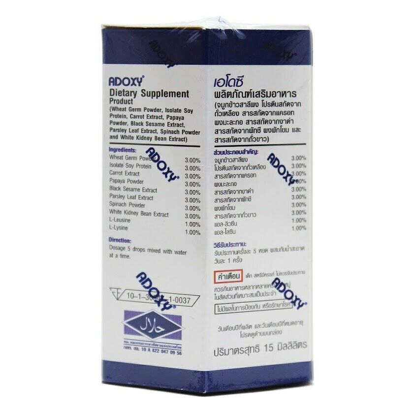 Adoxy is a dietary supplement containing 78 minerals, 34 enzymes and 17 amino acids in liquid form for cellular repairing and boost your immune system. Adoxy acts as a preventative, pre-empting the onset of chronic diseases. And the most important thing, Adoxy will increase the amount of oxygen to the body, as you know well that oxygen is important to help every part of the body work effectively.