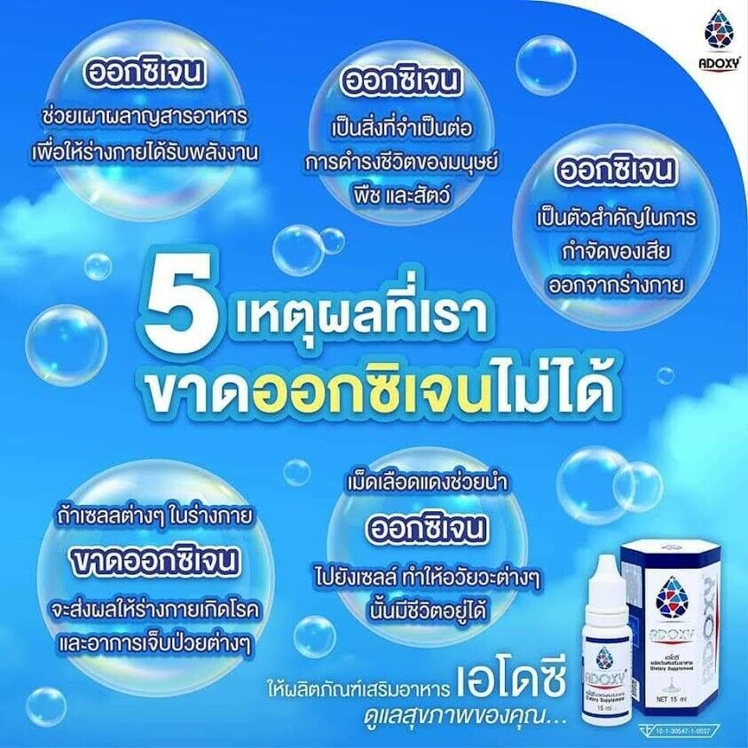 Apply 3-4 drops of Adoxy Adoxi in a spray bottle containing clean water. Shake well To spray on various parts of the body such as body skin, under the tongue, nasal cavity, etc. It can also be used on wounds or rash areas. If used on facial skin We should mix to dilute about 3-4 drops.