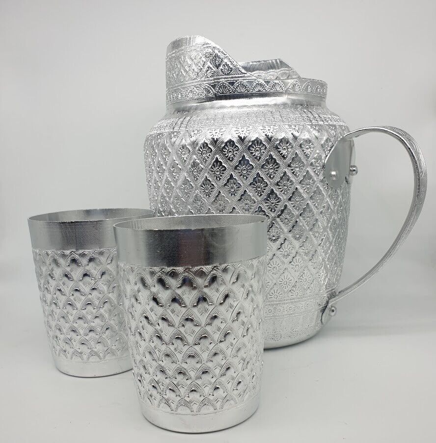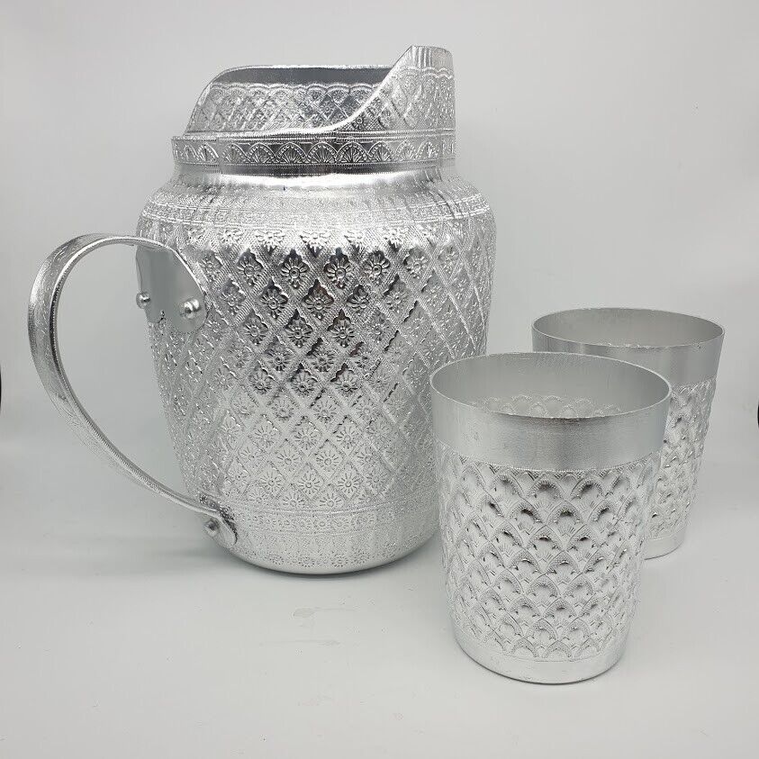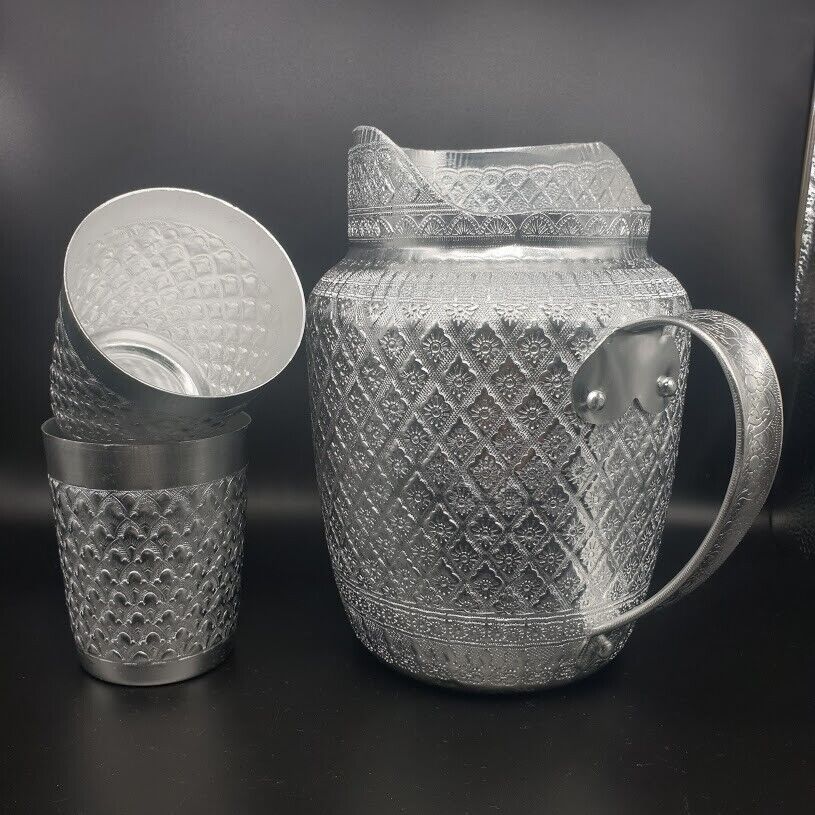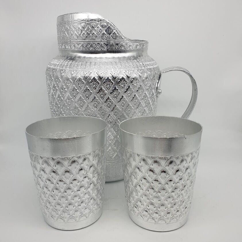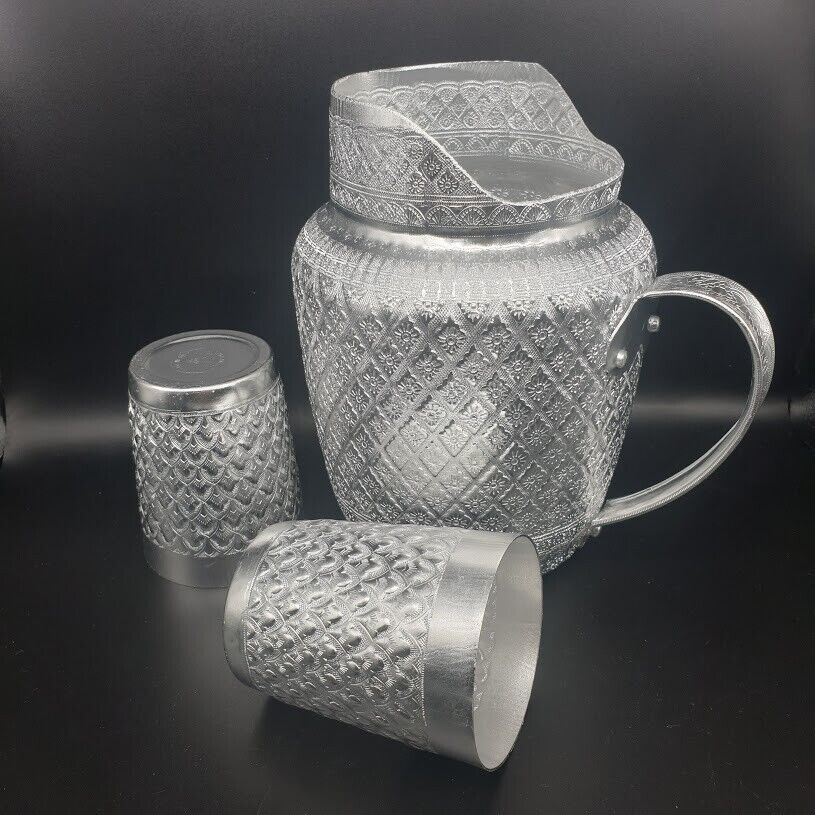Pitcher Jug Jar Mug Aluminum Liquid Water Vintage Thai Silver Drinking 3 pcs in the Set Expedited shipping by DHL express 3-5 business days delivery. **** We cannot ship to REMOTE AREA **** Product of Thailand