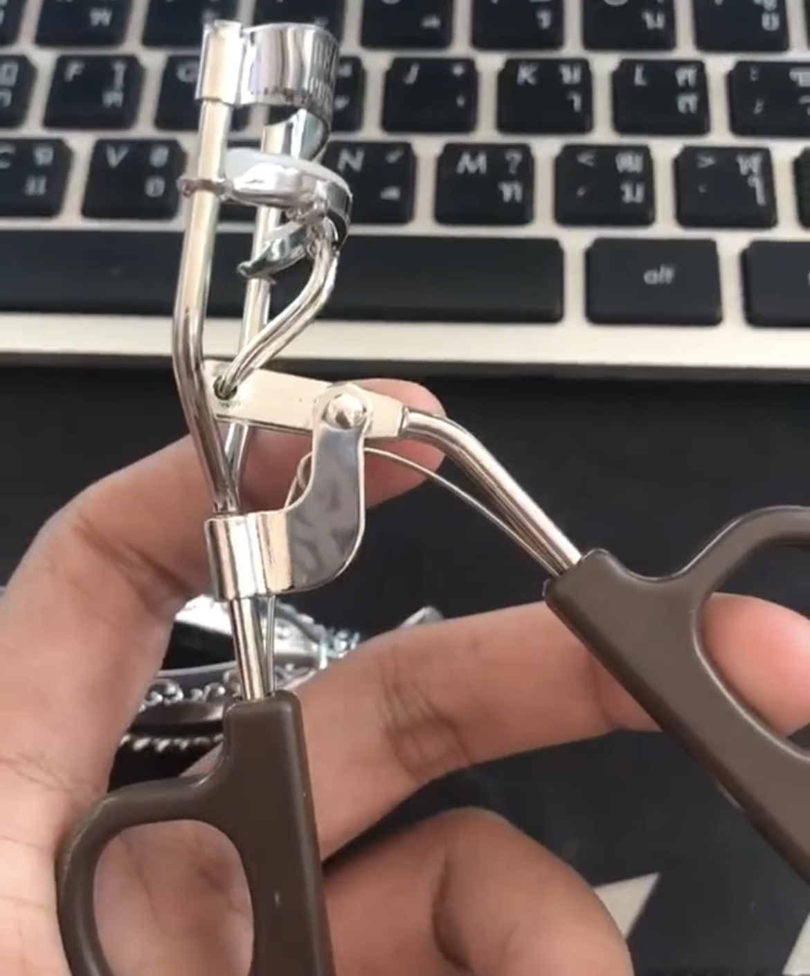 Center upper lashes between the slot of the lash curler move the curler close to lash line and gently squeeze the handles repeat for more curl.