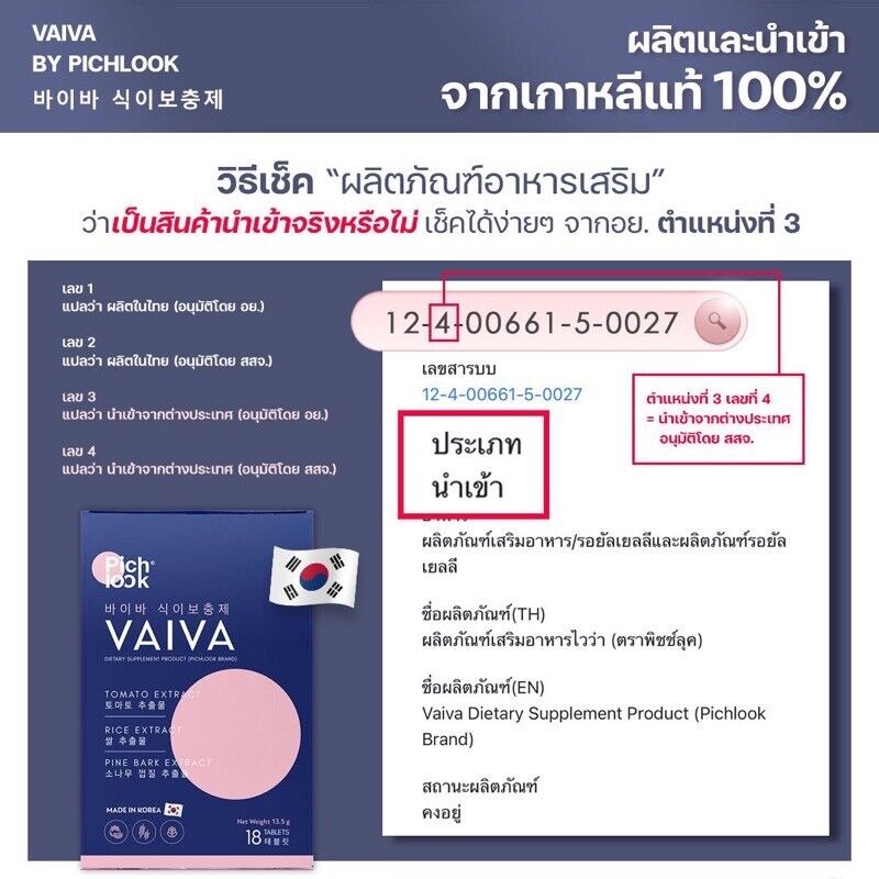 4x Vaiva by Pichlook Skin Boosting Vitamins Clear Acne Reduce Freckles (72 Caps)Free shipping & Tracking number **** Excluding Remote Area Surcharge **** DescriptionCondition : NewSize : 18 Capsules / BoxQuantity : 4 Boxes / SetFDA : 1240066150027Product detail & Benefit- Helps the skin to be clear and sparkling like a crystal. Because it is rich in colorless Carotenoid, it makes the skin clear but not yellow.- Reduce the appearance of freckles- Reduce acne scars and scars- Solve the problem of dark eye circles- Helps protect against UV rays and raises MED (makes skin more resistant to sunlight).- Help with insomnia because it contains vitamin B6/9/12.How to eatTake 1-2 tablets per day before breakfast