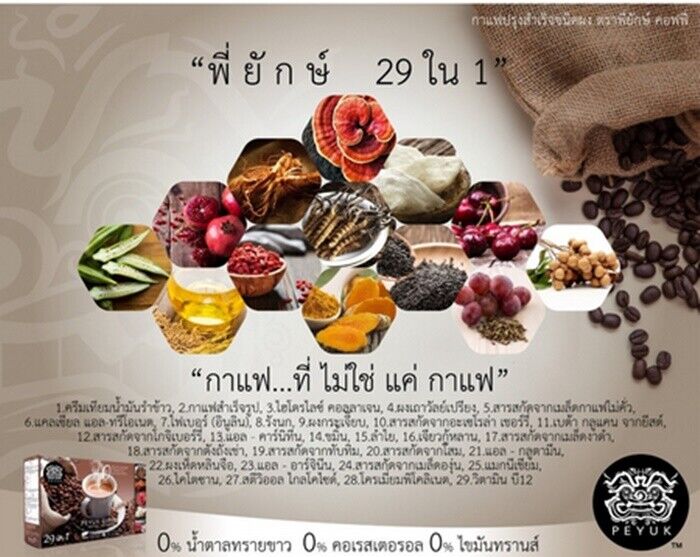 PEYUK instant coffee for health, herbal extract 29 in 1 box 150 g.