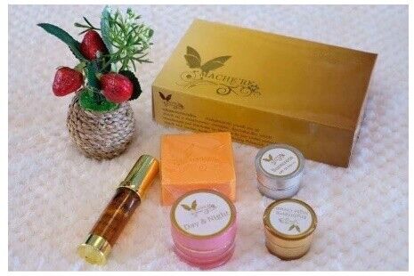 Set Mache're Gold Lightening Whitening Cream Soap Sunscreen Serum Anti Agin Freckles Wrinkle Acne Dark Spot