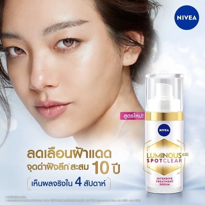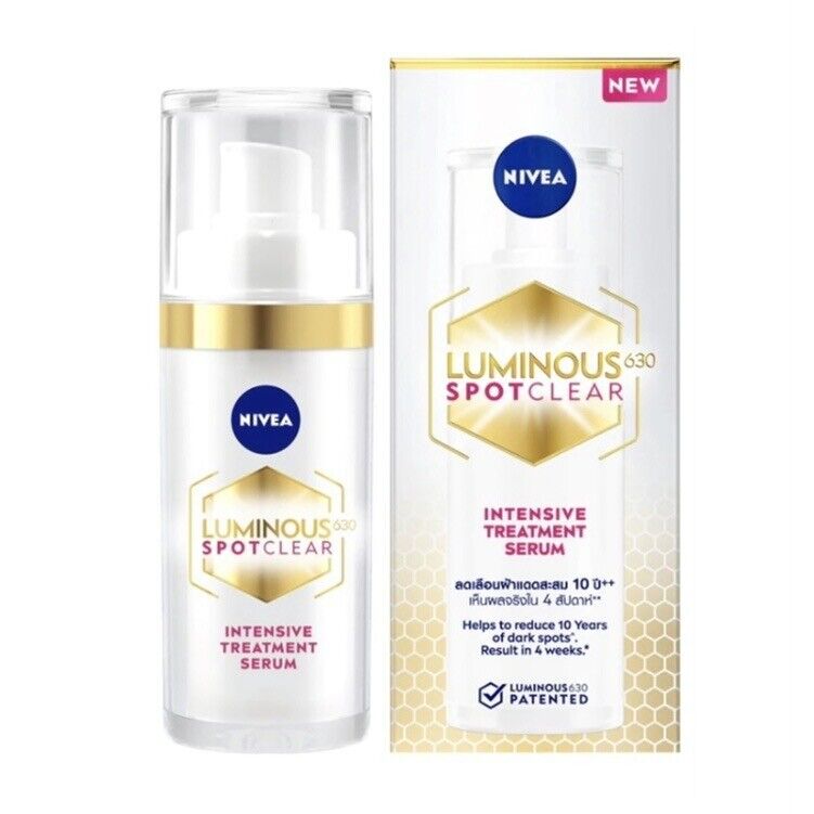 Nivea Luminous 630 Spot Clear Without Harming Skin Hyaluron Vitamin E Free Ship Free shipping with Tracking number Description : The most effective treatment from NIVEA to the source Reduce dark spots and blemishes from the accumulated sun for 10 years. Fade in 4 weeks without causing side effects. Pass the performance test By dermatologist Along with the package of the freshly activated booster, which collects the cream on both sides for maximum efficiency when mixed together on the skin Notification receipt number 10-1-6200026396 / 10-1-6200012260 How to use Press the pump to get both types of booster on the palm of the mixture, mix both booster on the skin, spread over the face morning - evening. For the first use Innovative container on both sides to maintain the freshness of the booster. For the first use Press the center of the pump several times to stimulate the booster to come out on both sides. Ingredient AQUA, CETEARYL ISONONANOATE, DIMETHICONE, GLYCERIN, ISOPROPYL PALMITATE, ALCOHOL DENAT., COCOGLYCERIDES, BUTYLENE GLYCOL, DISTARCH PHOSPHATE, METHYLPROPANEDIOL,TAPIOCA STARCH, PHENOXYETHANOL, CETYL ALCOHOL, STEARYL ALCOHOL, GLYCERYL STEARATE, PARFUM, SODIUM STEAROYL GLUTAMATE ACRYLATES/C10-30 ALKYL ACRYLATE CROSSPOLYMER, ISOBUTYLAMIDO THIAZOLYL RESORCINOL, SODIUM POLYACRYLATE, TRISODIUM EDTA, SODIUM HYALURONATE, SODIUM HYDROXIDE, TOCOPHERYL ACETATE, SODIUM ASCORBYL PHOSPHATE, SODIUM CHLORIDE, CI 15985, CI 16035, SODIUM SULFATE AQUA, HOMOSALATE, BUTYL METHOXYDIBENZOYLMETHANE, ETHYTHEXYL, SALICYLATE, BUTYLENE GLYCOL DICAPRYLATE/DICAPRATE, ETHYLHEXYL TRIAZONE, ALCOHOL DENAT., BIS-ETHYLHEXYLOXYPHENOL METHOXYPHENYL TRIAZINE, DIMETHICONE, PHENYLBENZIMIDAZOLE SULFONIC ACID, SILICA, TAPIOCA STARCH, BEHENYL ALCOHOL, CETEARYL ALCOHOL, METHYLPROPANEDIOL, GLYCERIN, ISOBUTYLAMIDO THIAZOLYL RESORCINOL, SODIUM HYALURONATE, TOCOPHERYL ACETATE, ETHYLHEXYLGLYCERIN, SODIUM STEAROYL GLUTAMATE, XANTHAN GUM, CARBOMER, ACRYLATES/C10-30 ALKYL ACRYLATE CROSSPOLYMER, SODIUM CHLORIDE, SODIUM SULFATE, TRISODIUM EDTA, SODIUM HYDROXIDE, PHENOXYETHANOL, PARFUM, CI 15985, CI 16035 Our Policy Customs Duty fees & Import Taxes: (IMPORTANT, Must Read Before Ordering) # Buyers may need to pay the customs fees & import taxes when your order value is higher than the threshold value of your country. Please check with your country's customs to understand the fee rate before ordering so you can estimate how much you need to pay. # Customs duty fees / import taxes and charges are not included in the product price or shipping cost. These fees are the buyer's responsibility. # The customs fees / taxes are normally collected by the shipping carrier company to pay for your country's customs. It is not the additional shipping charge from us so please don't confuse. # I cannot accept the return shipment because buyers don't want to pay the customs fees / taxes in any case. # Customs duty fees / taxes are the law of your country. No one can have the privilege to avoid these fees. If you don't want to pay these fees / taxes, please don't buy Shipping: # Shipping worldwide from Thailand via Thailand via Economy shipping Airmail and including provide Tracking number. & take 14-23 business days. (The shipping time may be longer than normal depending on the location of your area, the uncontrollable customs clearance delay, or other uncontrollable events). # We will normally ship the item within 3 business days. # For multiple orders, if no other instruction from the buyer, the orders will be combined to ship together in 1 shipment. Return & Refund: # 100% Guarantee. Any issue, please let us know & get full refund in 30 days. # Postage cost is non-refundable. Return postage cost is the buyer's responsibility. Thank you very much. Have a good day.