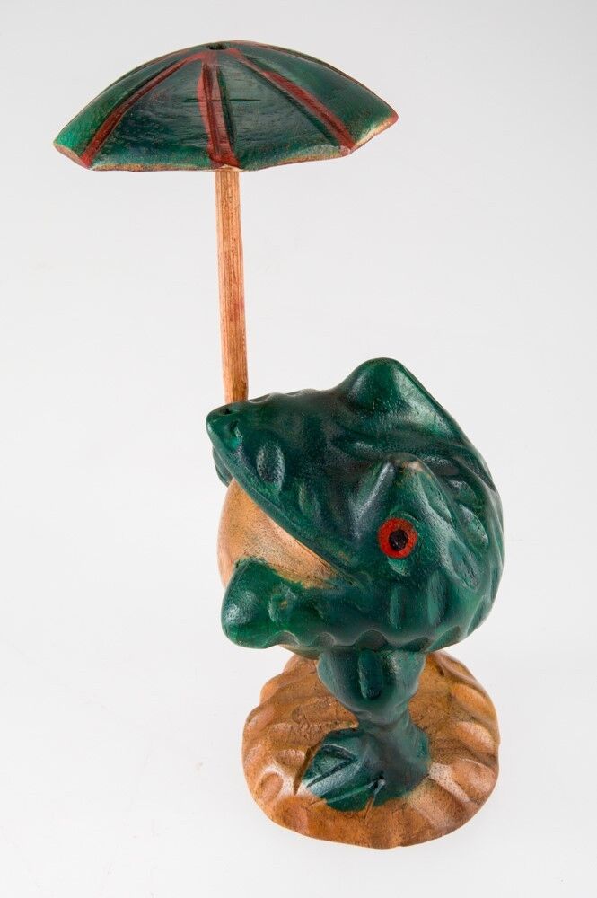 Welcome Frog Figurine Wood Carved Green Idea Hand Painted Cute Animal Figure Decor CraftDescriptionCondition: NEW Size (approx.) Frog : 3 x 3 x 5 1/2, Umbrella 3 1/8 x 3 1/8 x 4 1/4 inches. Quantity: 1