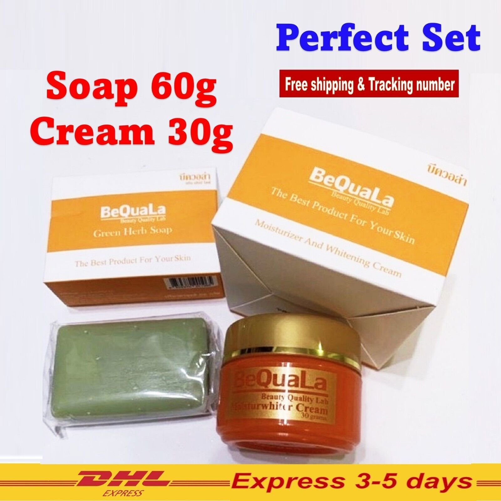 BeQuaLa Facial Acne Freckles Moisturwhiter Cream & Green Herb Set