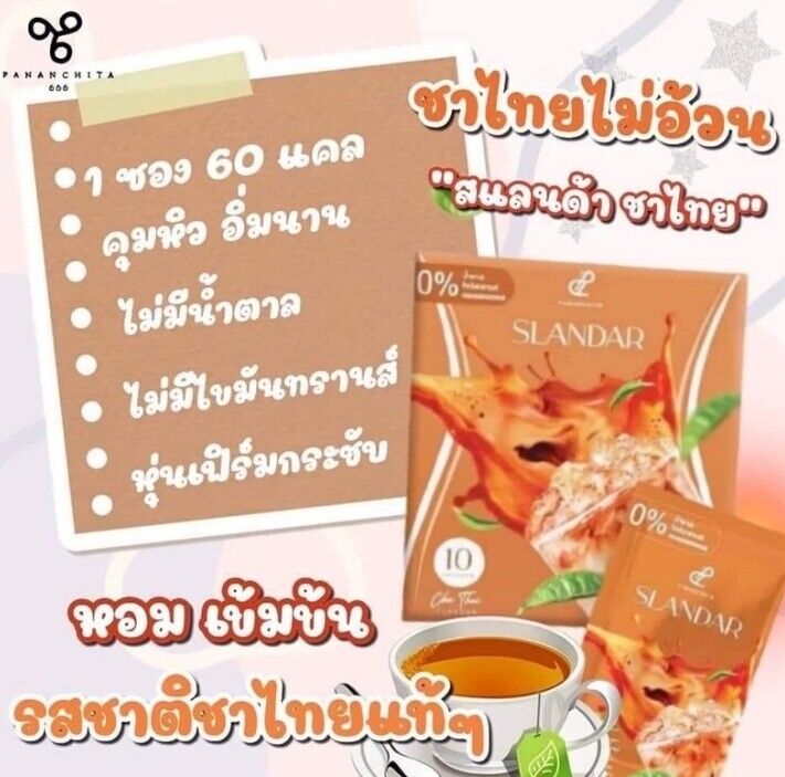 Slandar Cha Thai, an ancient recipe, full of Thai tea flavor, delicious without sugar.