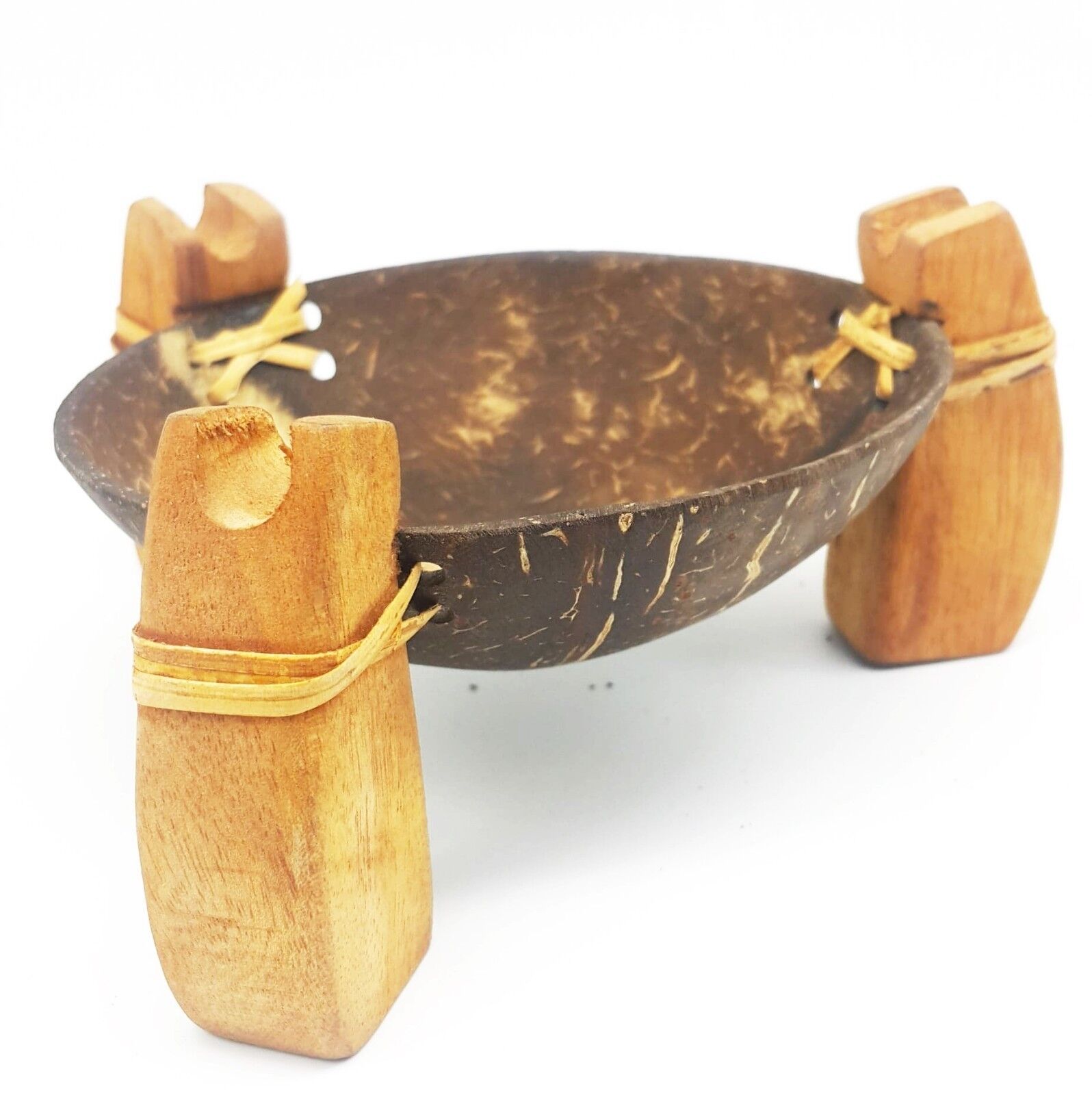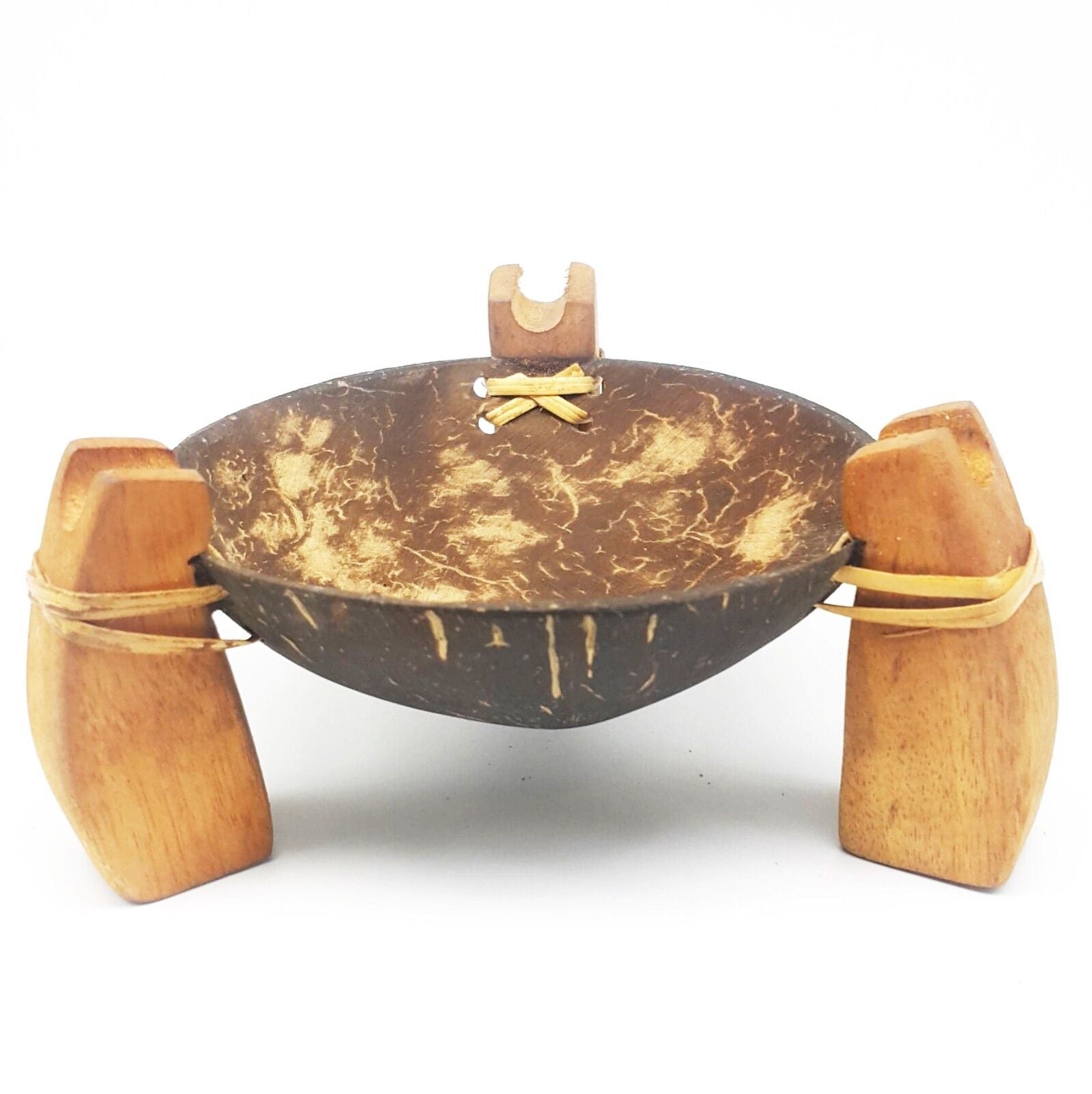Soap Dish Vintage Coconut Shell Teak Wood Bathroom Dispenser Shower Handmade