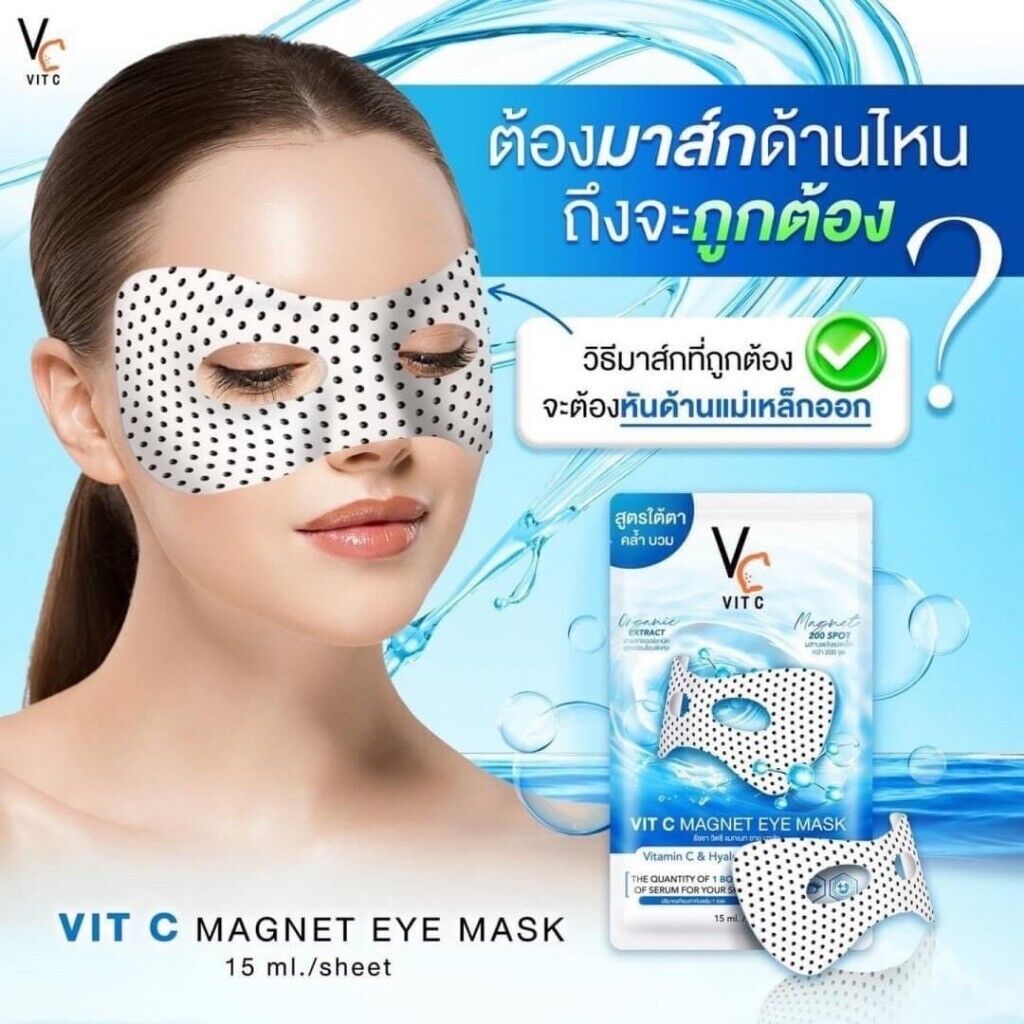 Combining the main extracts from Vitamin C, Hyaluronic acid, Ceramide, Collagen & Elastin with over 200 magnetic energy points to allow the extract to penetrate deeply into the skin. Reduce dark circles under the eyes, reduce puffiness, reduce bags under the eyes to make the skin under the eyes look bright and full of water when used regularly and continuously. With an innovative mask sheet made from 100% natural fibers with special weaving technology so that the mask sheet wraps around the eyes. Makes important extracts fully absorbed into the skin.