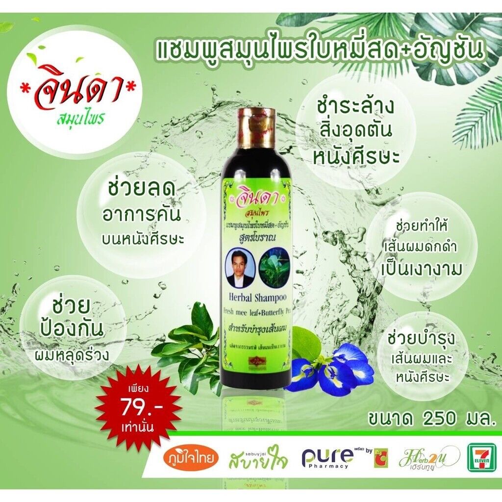 3x Jinda Fresh Mee Ancient Formula Hair Loss Treatment Natural Shampoo 250ml